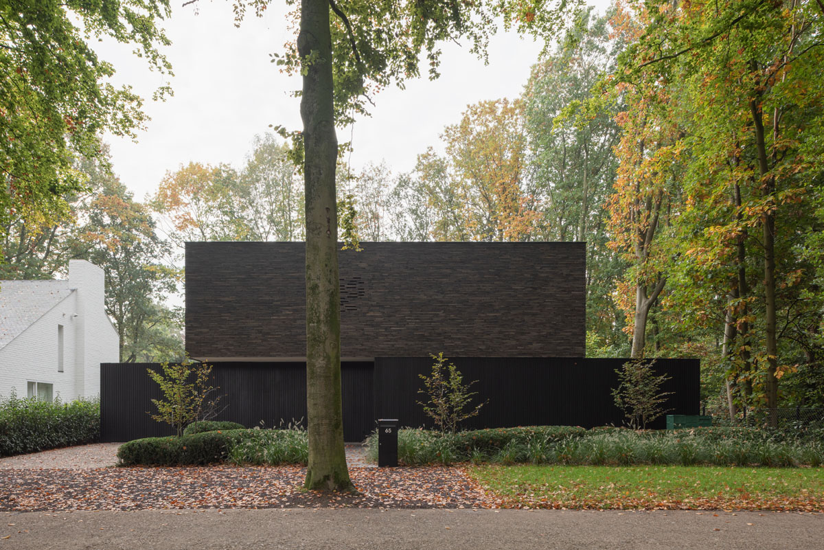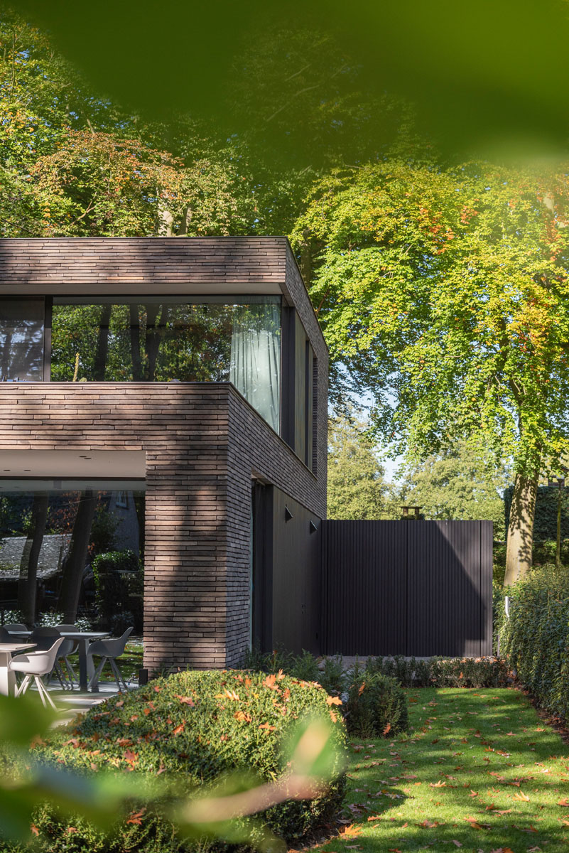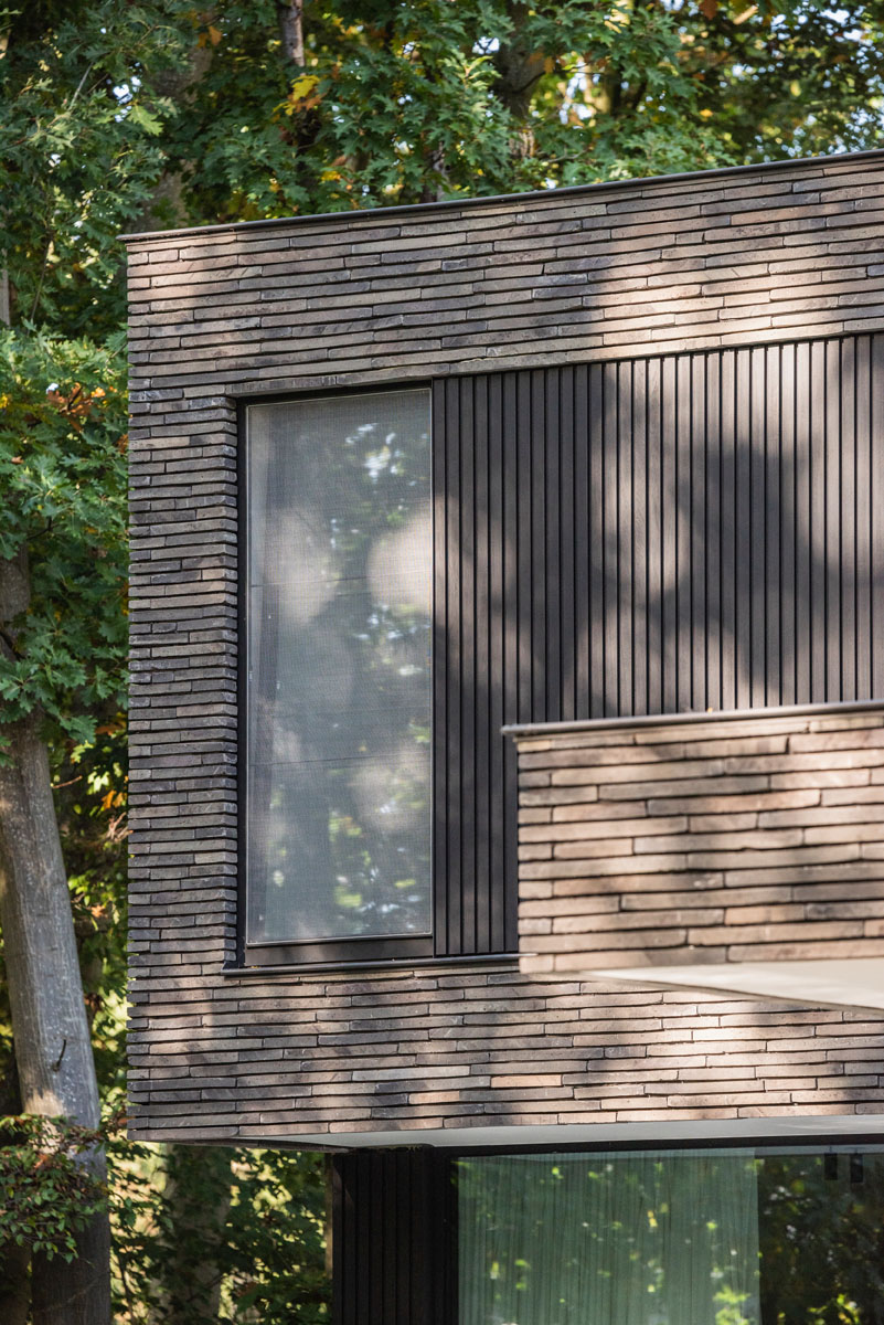 Hand-Made langformaat gevelsteen verenigt moderne villa met bosrijke context
