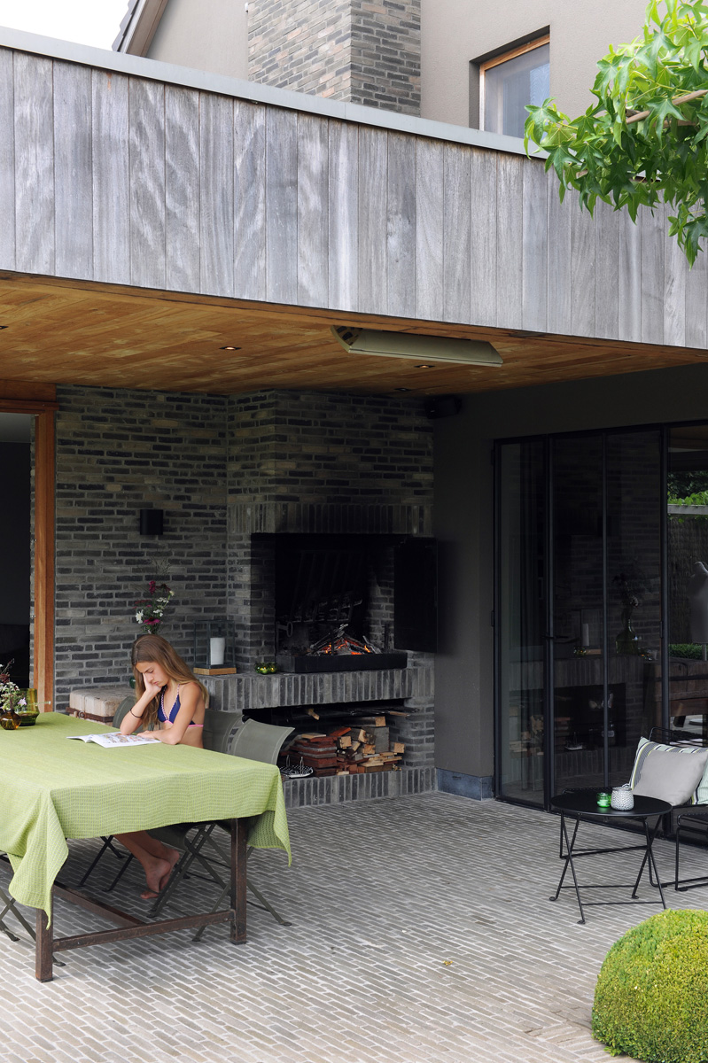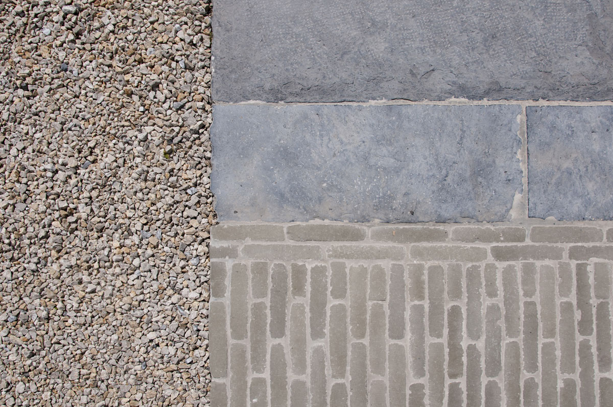 Binnen een stijl die niet volledig landelijk maar ook niet uiterst modern is, hebben we gebruik gemaakt van natuurlijke materialen en verschillende combinaties en toepassingen van materialen (hout - kleiklinkers - oude blauwsteendallen - grind, …).”