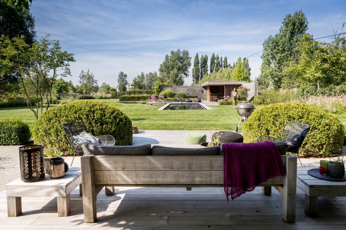 Als zaakvoerders van familiebedrijf Tuinen Hoornaert, ontwierp het koppel de buitenruimte met twee doelstellingen voor ogen: een rustgevende oase voor het gezin én een inspirerende demotuin voor de klanten.