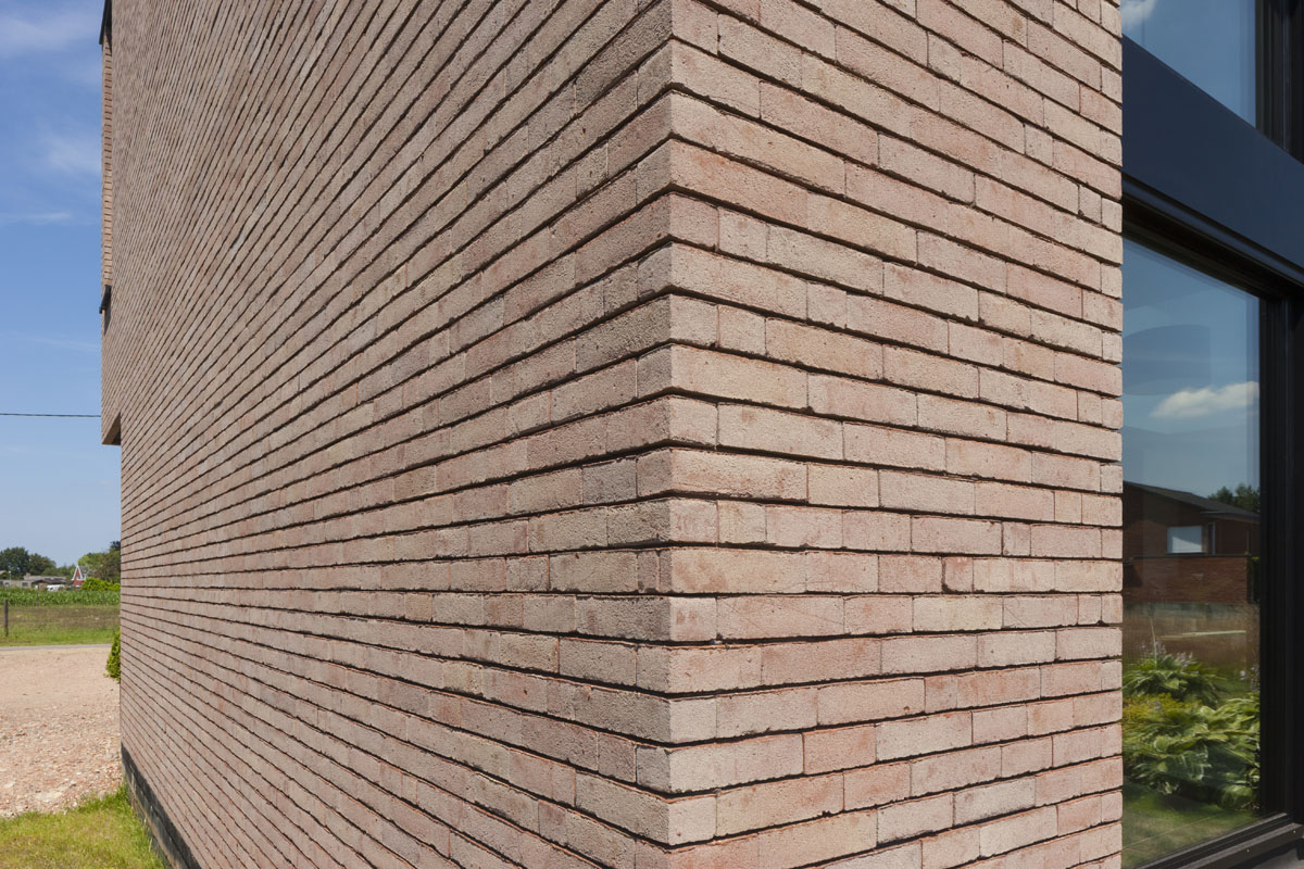Le projet Tirse à Brakel a été achevé en 2009. On a opté ici pour la couleur 8012. Cette teinte neutre intemporelle convient parfaitement aux lignes épurées et aux volumes importants. La finition sablée lui confère un caractère discret et apaisant qui se conjugue à merveille avec les grandes surfaces murales.