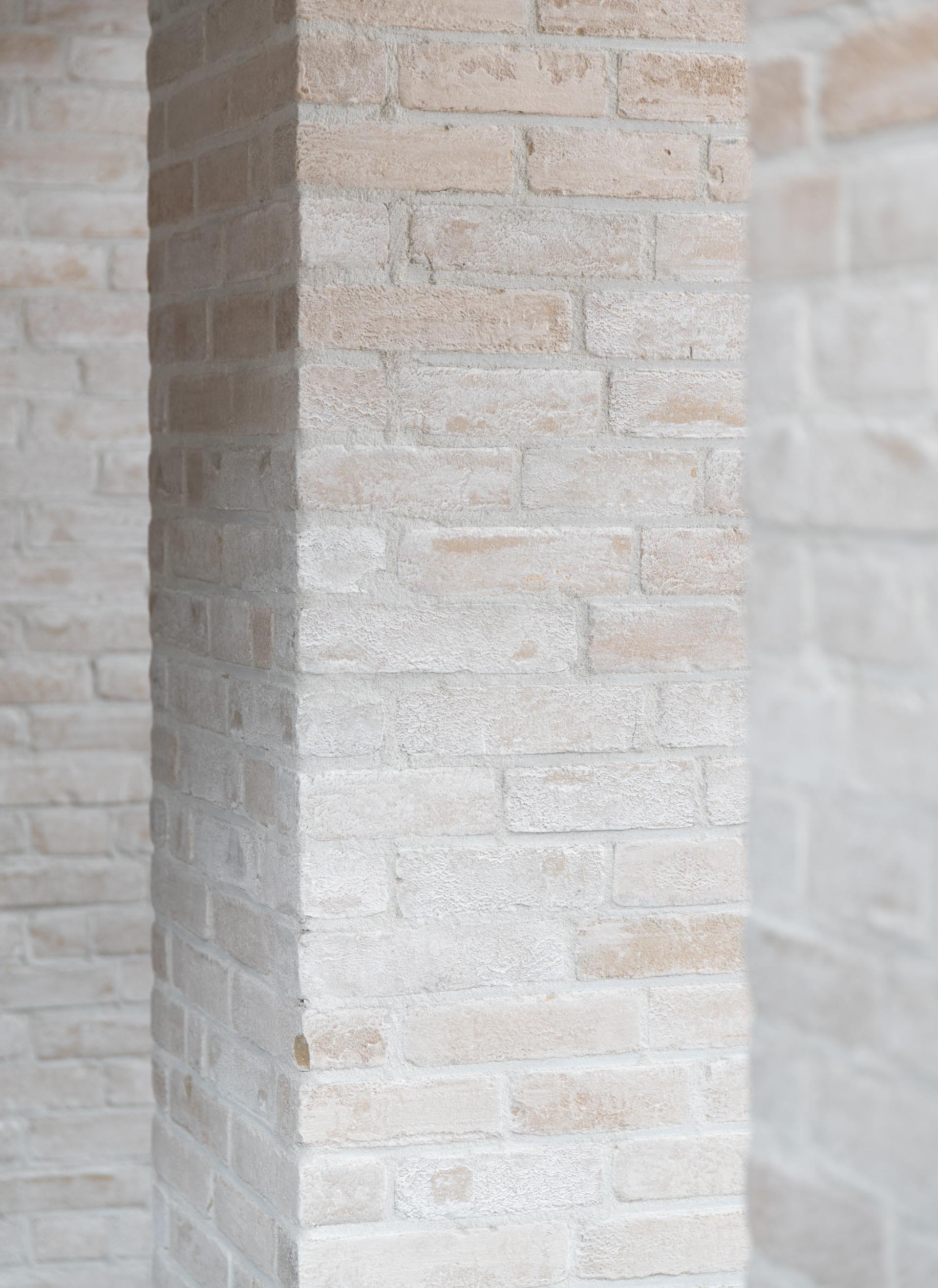Stonewashed Old White est une brique de parement gris-blanc légèrement tambourinée. Elle porte notre label ECO-7-size et fait partie de notre gamme Stonewashed. La brique de parement Stonewashed est très légèrement tambourinée et entièrement cimentée, ce qui lui donne sa couleur claire. Cette finition crée un aspect authentique, délavé, qui tend même à ressembler à un mortier Chipper. Par rapport à un format waal classique de 10 cm de profondeur, cette brique de parement sablée a une profondeur de 7 cm, ce qui laisse plus d'espace pour l'isolation ou la surface habitable.