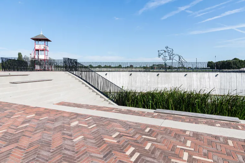 La porte de l'hippodrome est un exemple parfait de la manière dont l'infrastructure, la nature et la culture peuvent se renforcer mutuellement. Grâce au choix judicieux des matériaux et à la conception soignée d'Infraplan, un espace oublié a été transformé en un lieu urbain significatif. Une porte qui donne non seulement accès à l'hippodrome, mais aussi à une relation renouvelée entre la ville, l'eau et l'homme.
