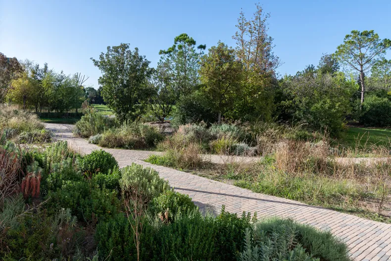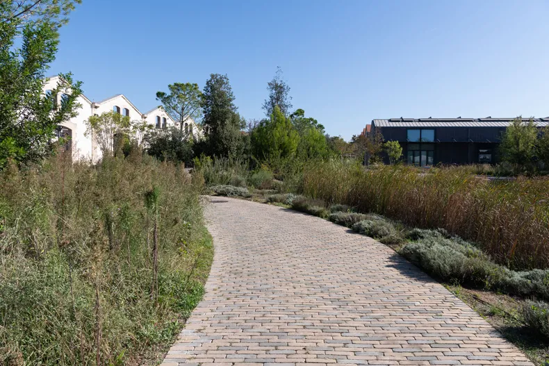 Bas Smets s'est inspiré des paysages uniques des environs d'Arles, en utilisant leur logique et leurs stratégies propres pour ramener la végétation sur le site. Cela a permis d'accélérer le processus naturel de végétalisation comme s'il s'était produit spontanément au fil du temps, car ces paysages représentent presque toutes les formes de résistance que le monde végétal a développées pour conquérir cette région, des marécages aux affleurements rocheux.