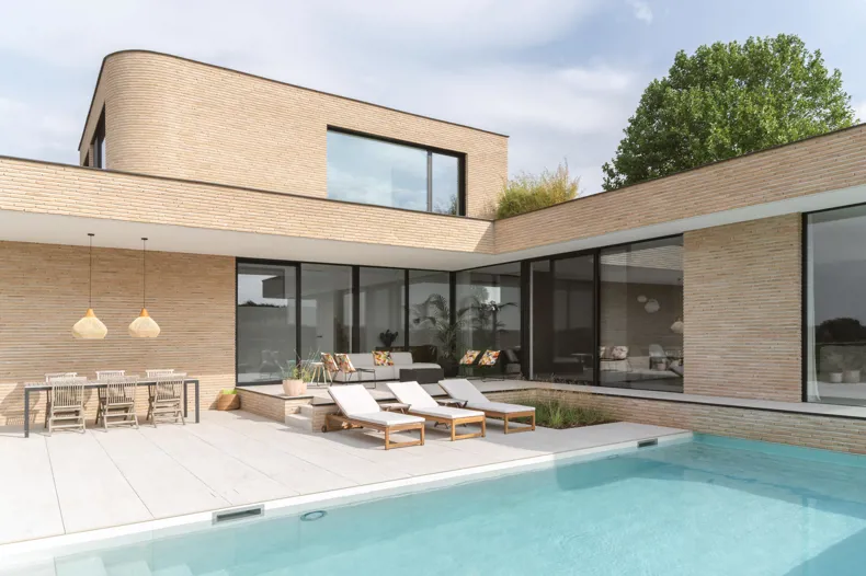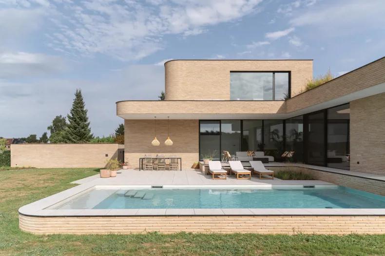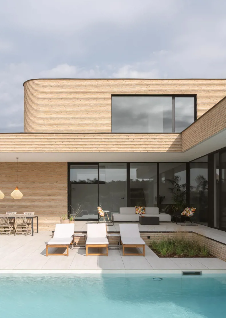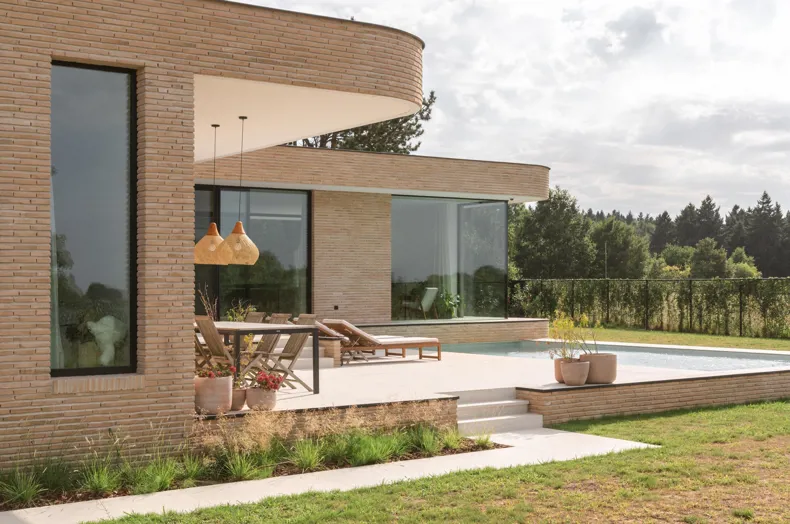 Dans cette villa, la brique de parement est plus qu'un simple matériau : elle structure l'espace, renforce le paysage et véhicule un design intemporel.