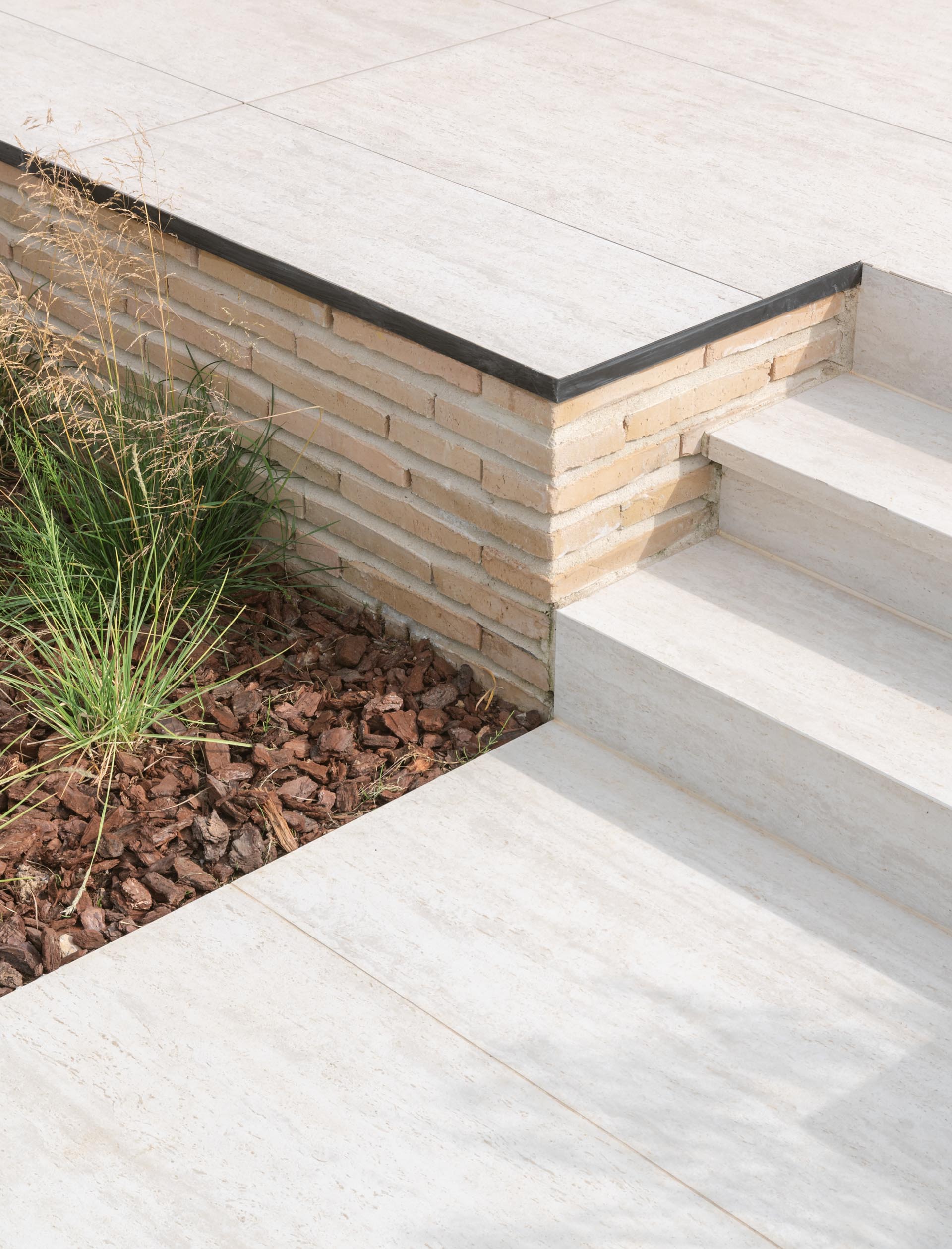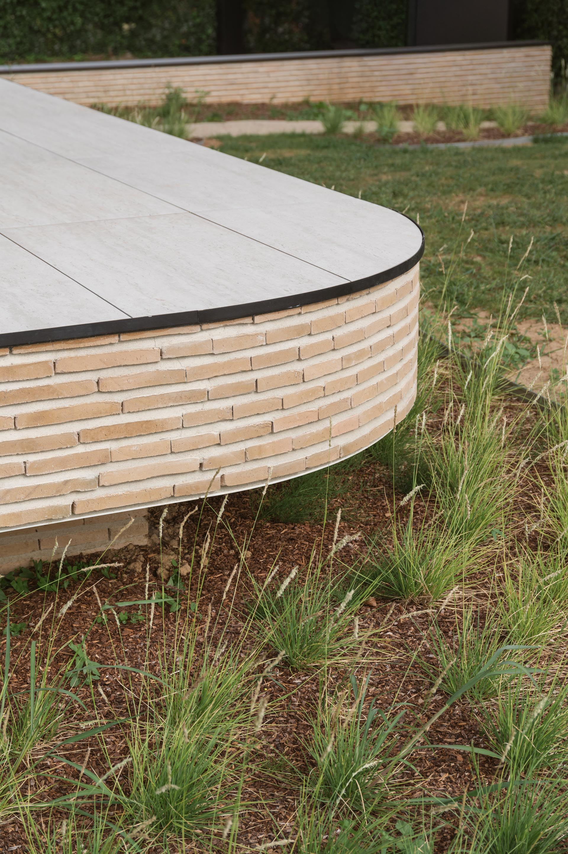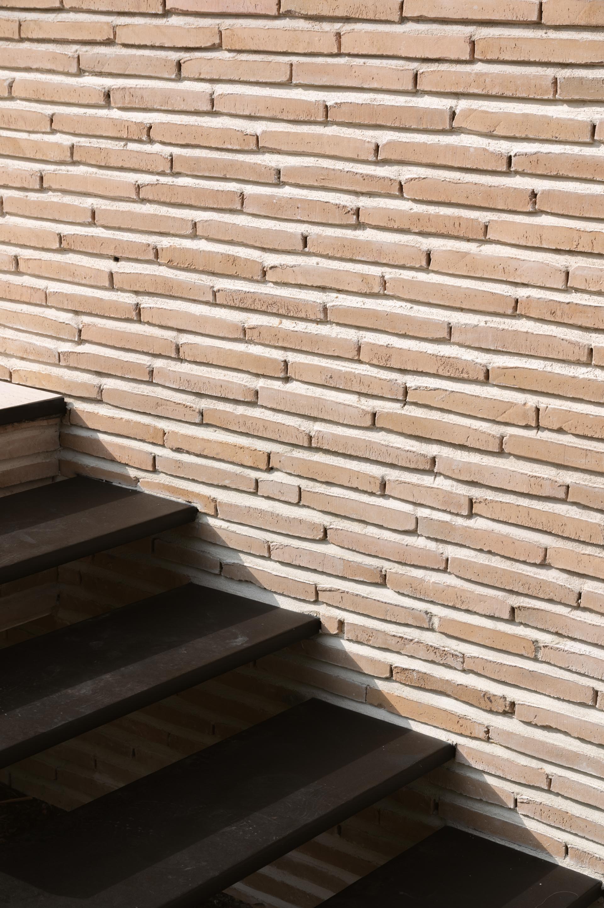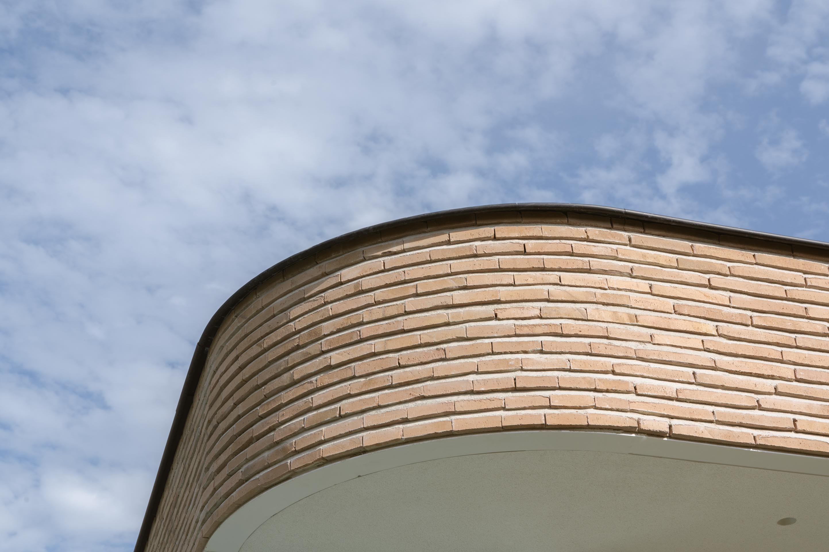 Les briques de parement ont été posées sans joint d'about, avec un joint horizontal chanfreiné de 2 centimètres d'épaisseur.