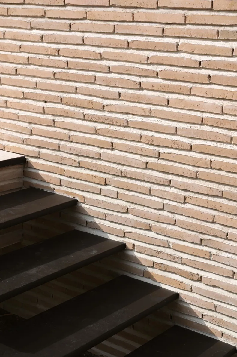 La brique de façade elle-même devait répondre à des exigences élevées. L'architecte recherchait une brique de couleur sable qui s'intègre dans l'environnement tout en étant chaleureuse et vivante. Grâce au procédé de fabrication à la main, la linea 1017 répond parfaitement à ces attentes. Son caractère artisanal offre une grande variété entre les différentes briques, même au sein d'une même palette. Afin de garantir l'aspect souhaité, la sélection des briques a été effectuée avec le plus grand soin pendant la construction.