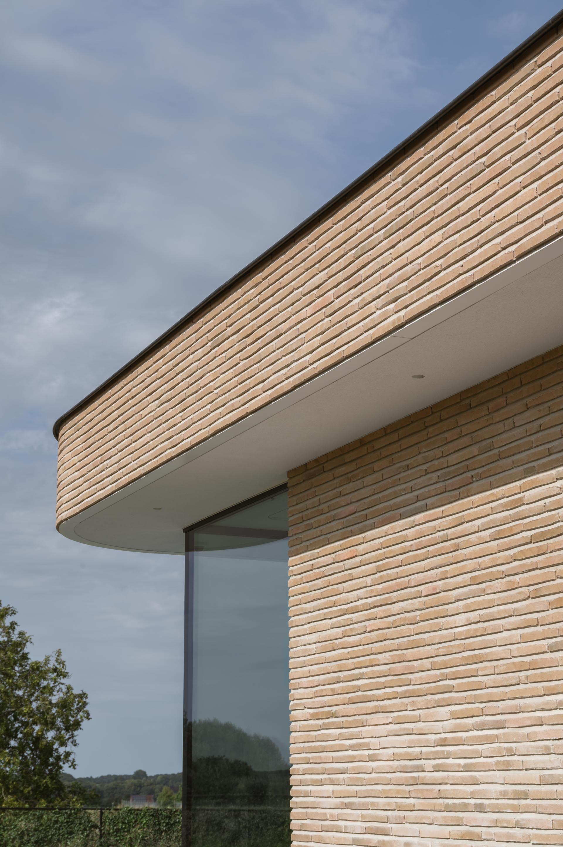 Concevoir une maison qui sert également de bureau d'architecte : cela suscite de grandes attentes. Dans le cadre féérique du bois de Hal, db architecten a réalisé une villa contemporaine où ouverture et intimité se marient de manière surprenante. Les angles arrondis, les volumes superposés et l'utilisation prononcée de la brique linea 1017 confèrent à la maison un aspect luxueux et moderniste qui s'intègre sans effort dans son contexte naturel.