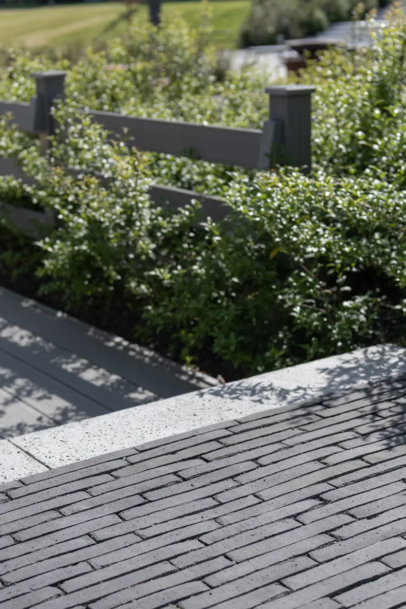 En tant que partenaire, Vande Moortel est très présent dans le parc, parfois de manière subtile et surprenante. Non seulement dans les différents décors, mais aussi dans la transition entre la promenade en boucle et les différents jardins de démonstration. Pour ce faire, BurO Groen a composé un mélange spécial de pavés en terre cuite. À ces endroits du parc, vous trouverez donc un mix de SeptimA Châtain, Taupe, Colosseum et Onyx.