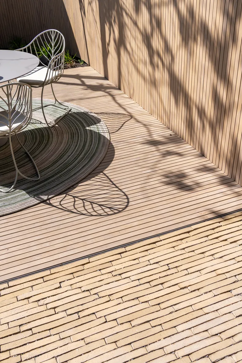 « Residential » illustre ce dont beaucoup d'entre nous rêvent lorsqu'ils pensent à un jardin, à savoir un endroit accueillant pour profiter et se détendre dans un cadre naturel. Ce qui retient ici l’attention est le mur monumental recouvert de plaquettes linea 3007 qui, avec les murs intérieurs et les terrasses en SeptimA Sépia et Ancienne Belgique Camel, donne forme au pavillon monumental.