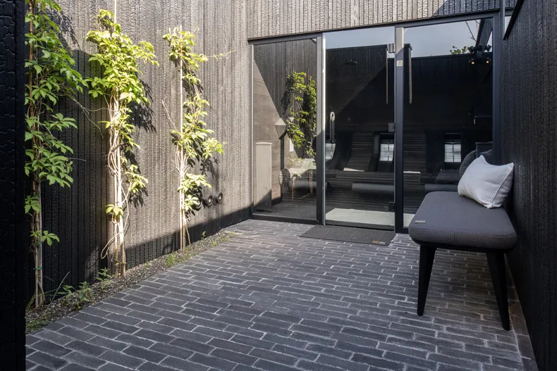 Au cours de votre promenade, vous découvrirez bien d'autres idées surprenantes. Par exemple, dans « Wellness », dont le thème est sans surprise le ressourcement et la relaxation totale, les pavés en terre cuite SeptimA Anthracite forment un socle pour les saunas, le jacuzzi et l'espace de relaxation.