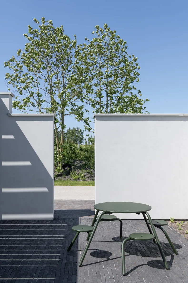 Cela permet de faire perdurer l'expérience car personne ne le perçoit comme un espace d'exposition. On se retrouve pour ainsi dire dans un cocon, à l'écart de la zone industrielle que le parc borde. Dès que le client a posé les yeux sur l'esquisse rapide de Koen, il a été séduit et lui a confié l'aménagement extérieur. Les différents décors des jardins, quant à eux, ont été conçus par Maister. Le parc est déjà ouvert, mais il faudra du temps pour qu'il prenne l’allure que l'équipe a en tête. Il s'agit d'un parc où la végétation mature atténuera encore davantage les nuisances de l'environnement.