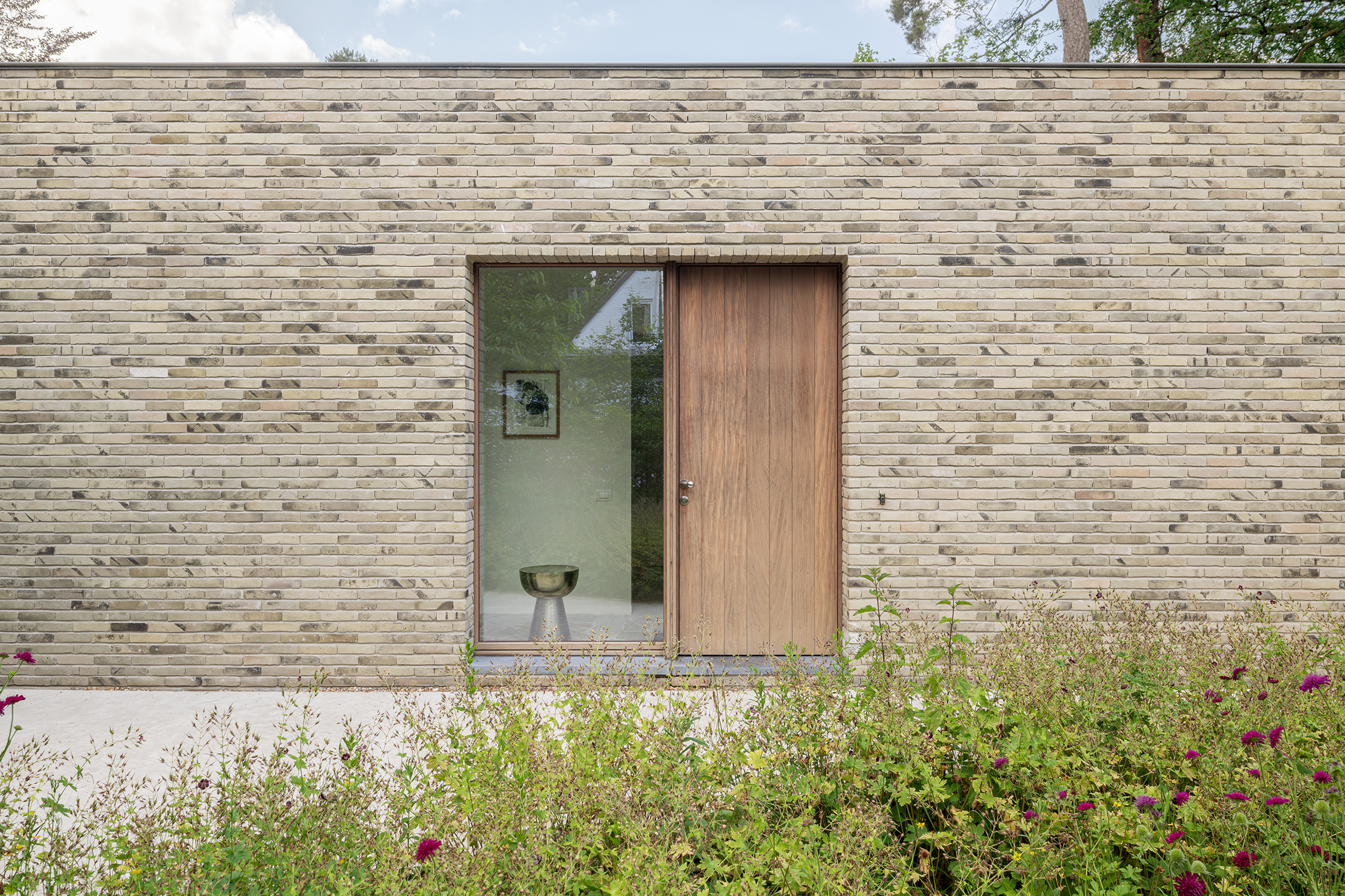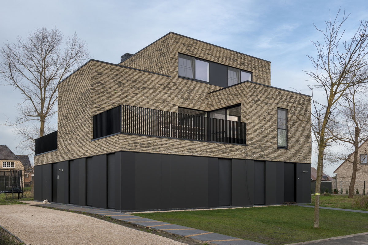 Vertrekkende van het gegeven van een relatief smal maar diep perceel in een parkgebied, stapt dit nieuwbouwontwerp af van de klassieke inplanting waarbij alle leeffuncties op één rij aan de achterliggende tuin geplaatst worden. In plaats daarvan werd ervoor gekozen om het volume van de woning open te breken in twee volumes en de voor- en zijtuinstroken evenwaardig te maken aan de tuin achteraan, zodat alle woonfuncties bij de groene omgeving betrokken werden en het parkgevoel werd versterkt. Het resultaat is een inplanting waarbij de woning niet gewoon aan de tuin grenst, maar middenin het groen staat.