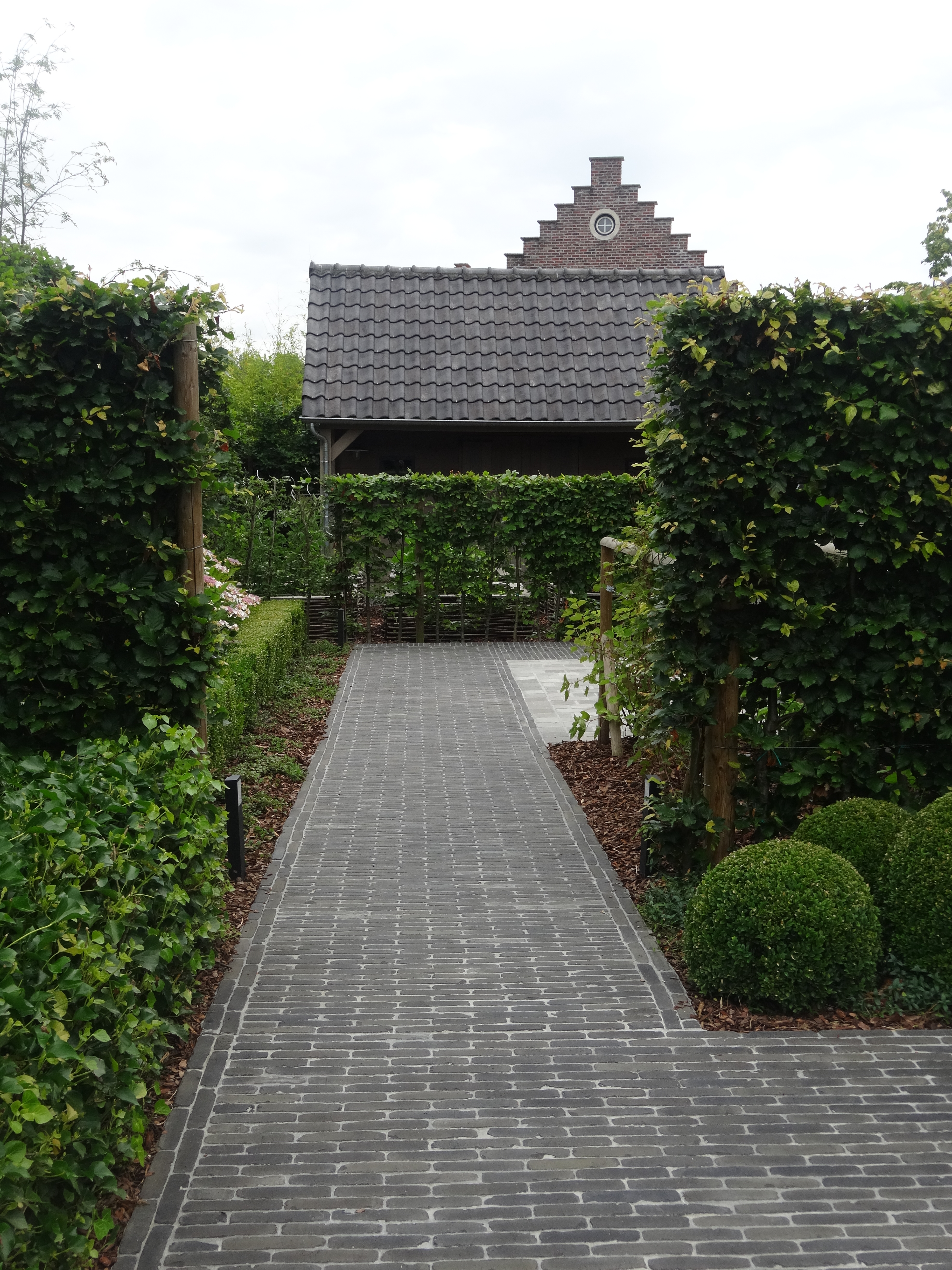 Voor de aanleg van tuinpaden zonder verkeersbelasting volstaat een funderingsdikte van min. 10 cm.