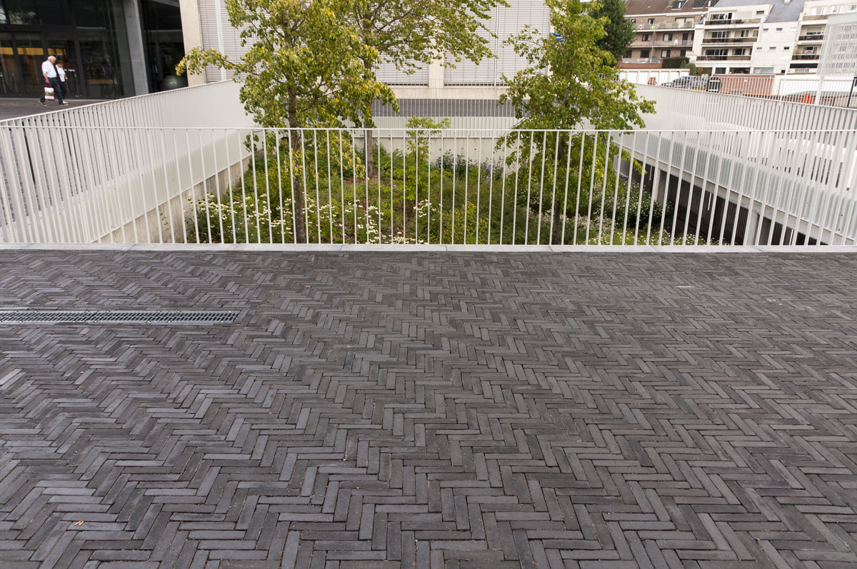 Het project waaraan Vande Moortel met zijn kleiklinkers een bijdrage heeft kunnen leveren, situeert zich in het hart van deze uitgebreide site: de herinrichting van de publieke ruimtes van het Terrasse des Hauts Fourneaux, waar een twintigtal gebouwen staan die samen la Cité des Sciences vormen.