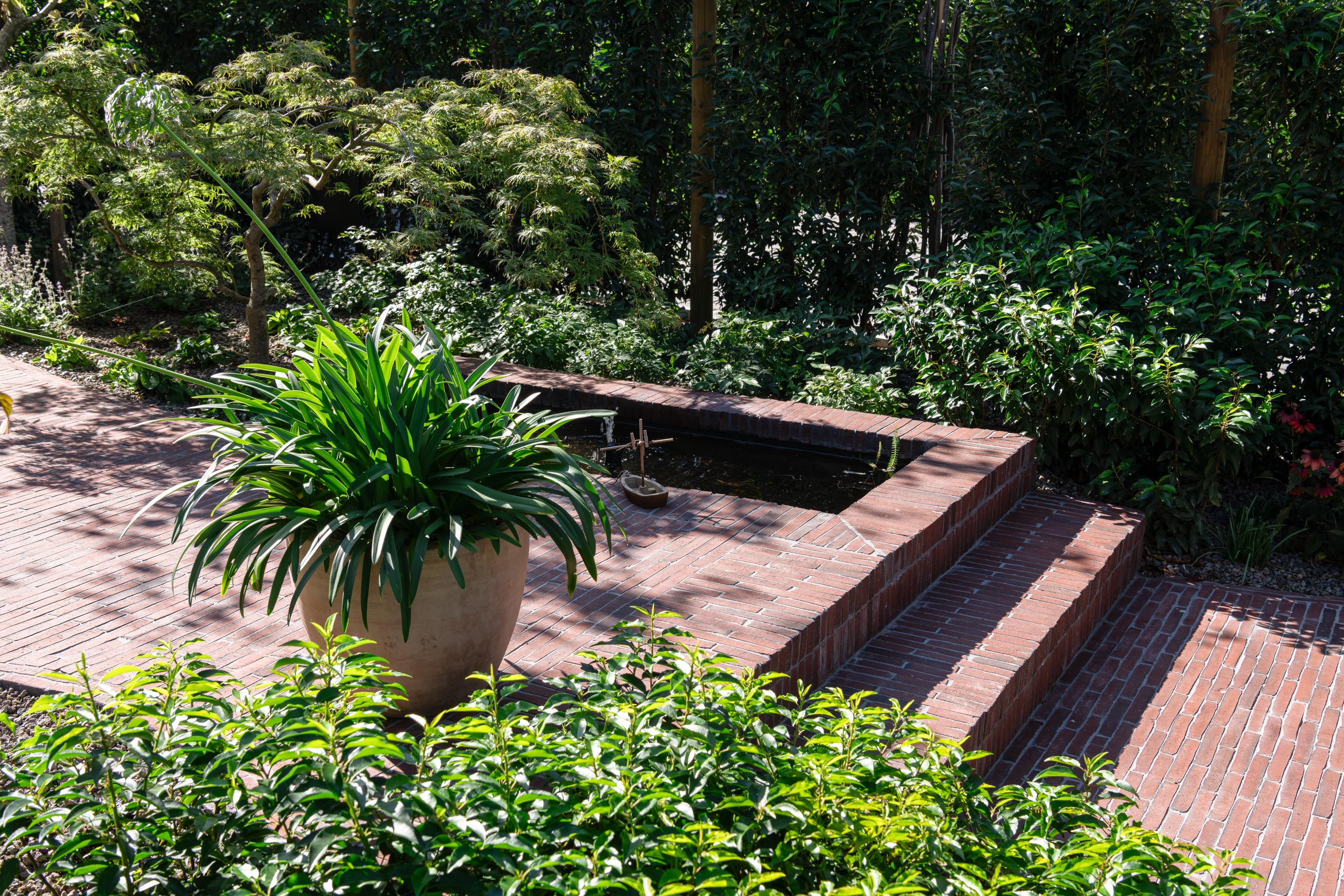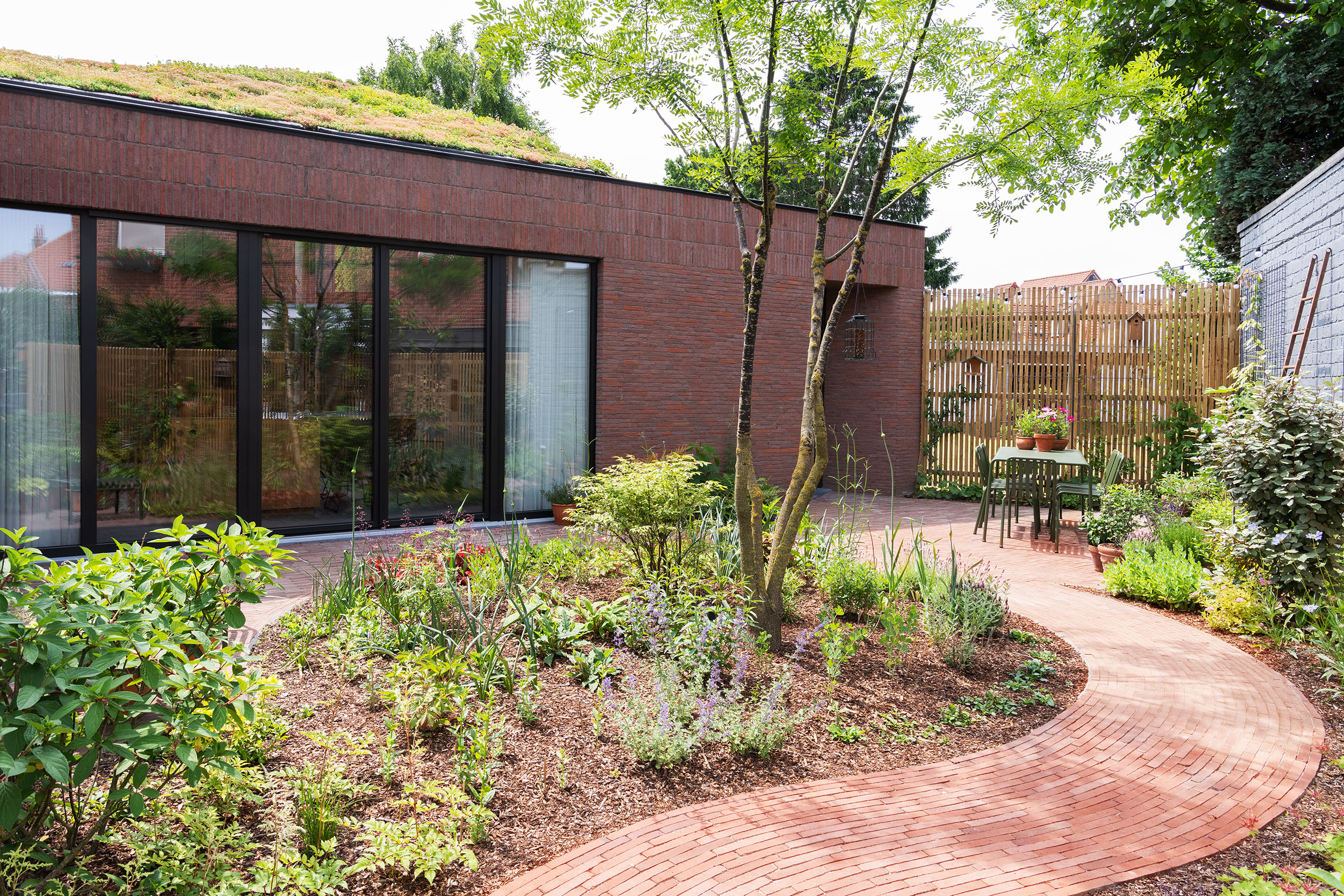 Het uitgangspunt van het ontwerp was een totale ontharding en het creëren van een leefruimte voor een gezin van vier, met meer het gevoel van een private tuin. Geen kale parking afgeboord met een haag, maar een echte plek om tot rust te komen.