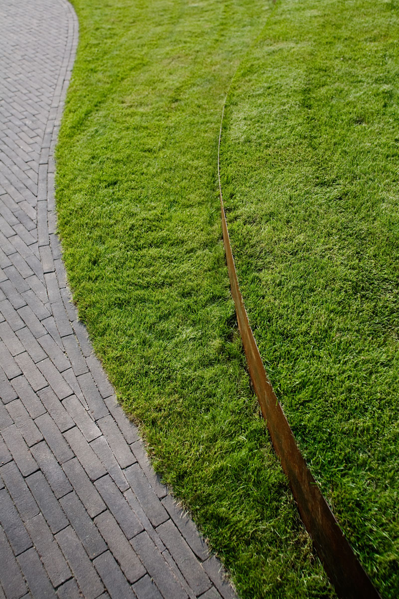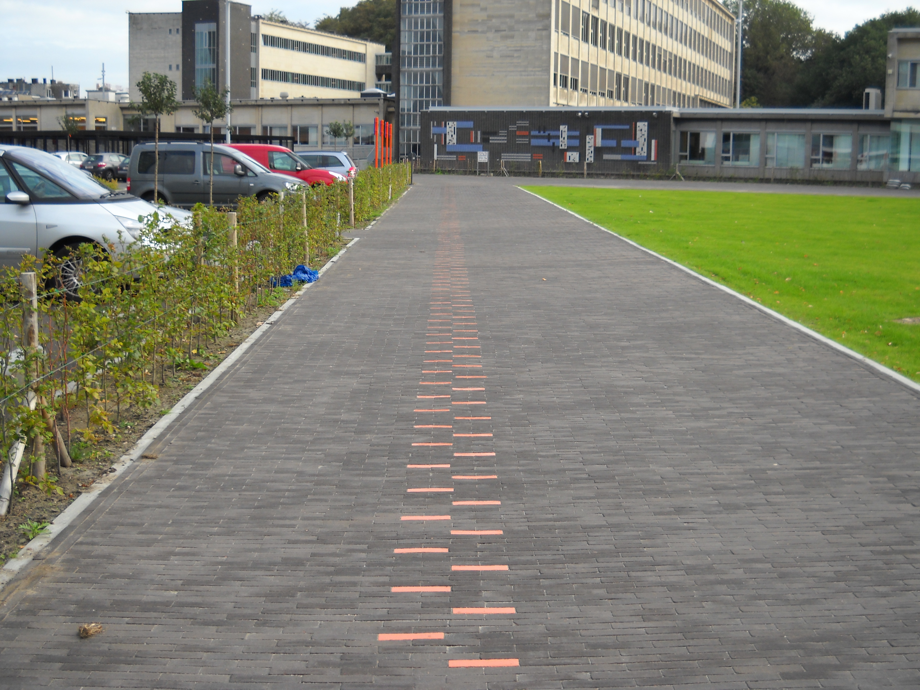 De verharding moet beschermd worden tegen verschuiving door een zijdelingse opsluiting van de klinkers. De kantopsluiting wordt geplaatst vóór het aanleggen van de fundering.