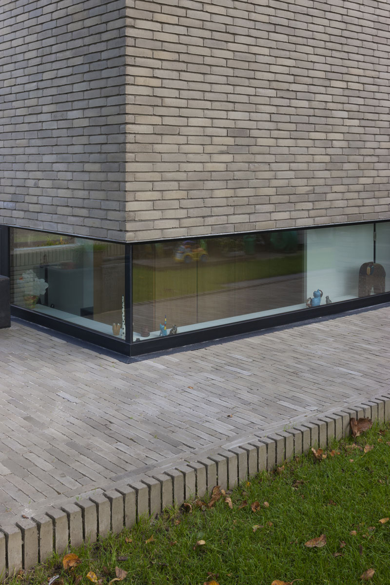 Deze moderne nieuwbouwvilla vormt een geometrisch ensemble in een groene omgeving. Een aaneenschakeling van lage volumes met slimme doorzichten zorgt tegelijk voor openheid en intimiteit.