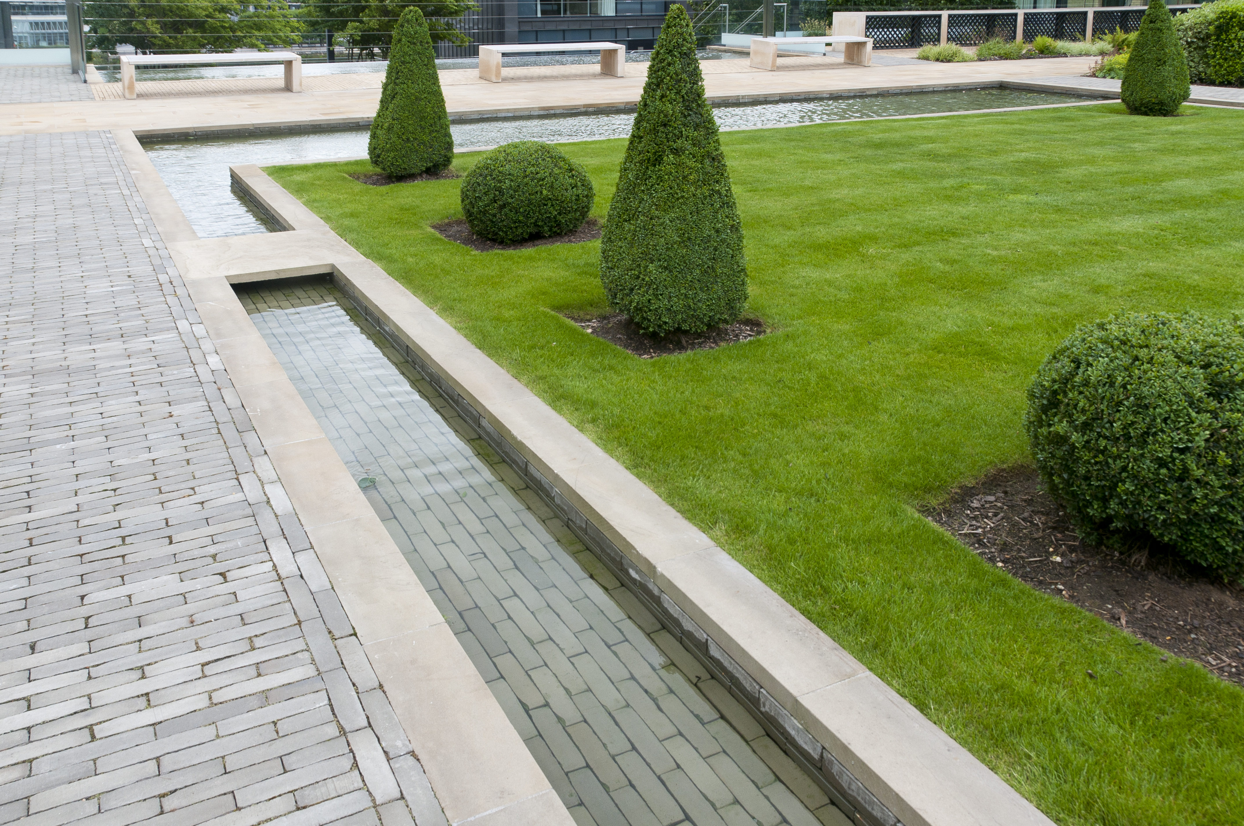 Een minimale helling van 1 à 2 % is aanbevolen. Het water moet steeds van het gebouw weglopen. Wanneer het water opgevangen wordt door een (sleuf)goot, dan dient deze minstens één maal per jaar grondig gereinigd te worden om een correcte afwatering in stand te houden