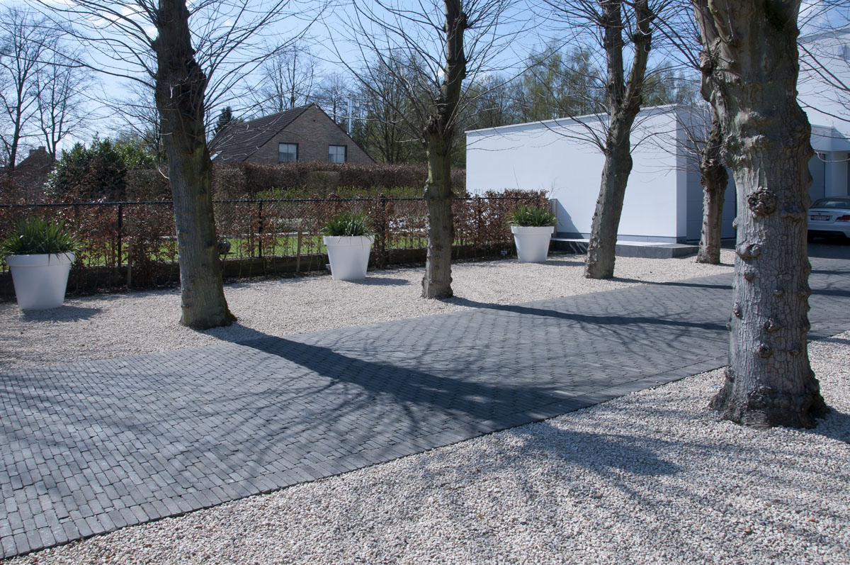 Pas als de klinkers allemaal vast zitten, is de bestrating klaar voor gebruik.