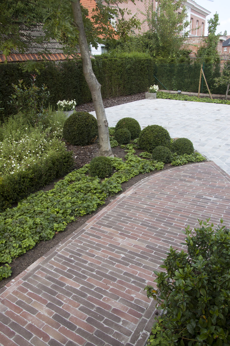 Voor de aanleg van tuinpaden zonder verkeersbelasting volstaat een funderingsdikte van min. 10 cm.