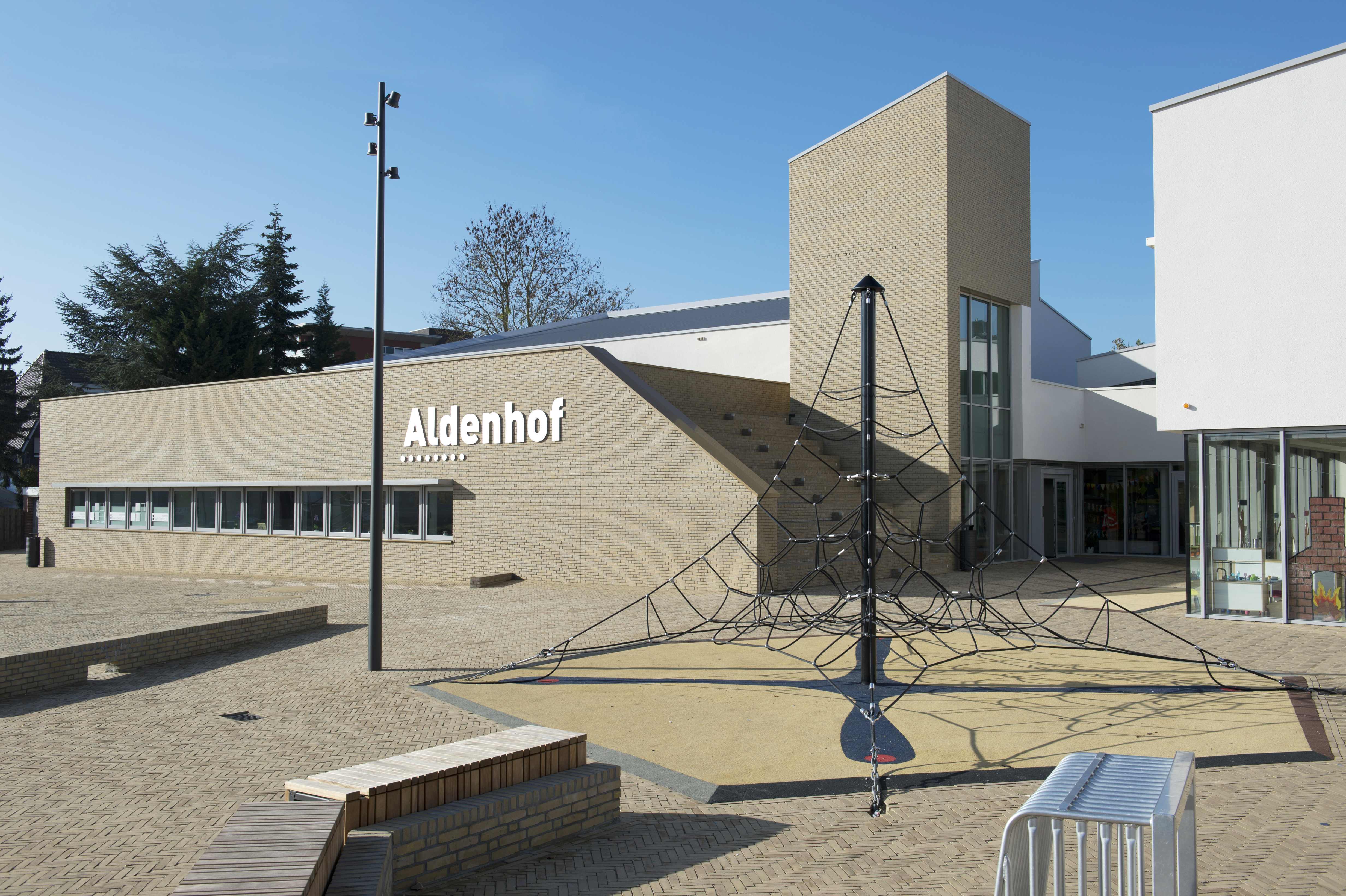 Contrastrijk patroon van SeptimA kleiklinkers kleuren buurtplein Kieke-Boe te Amsterdam