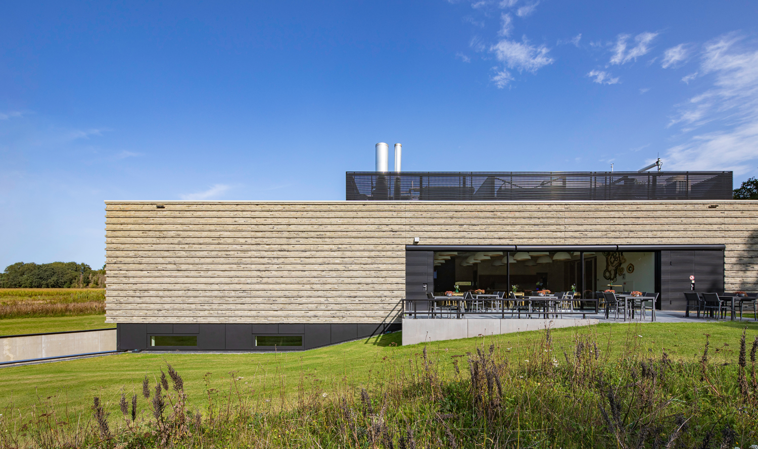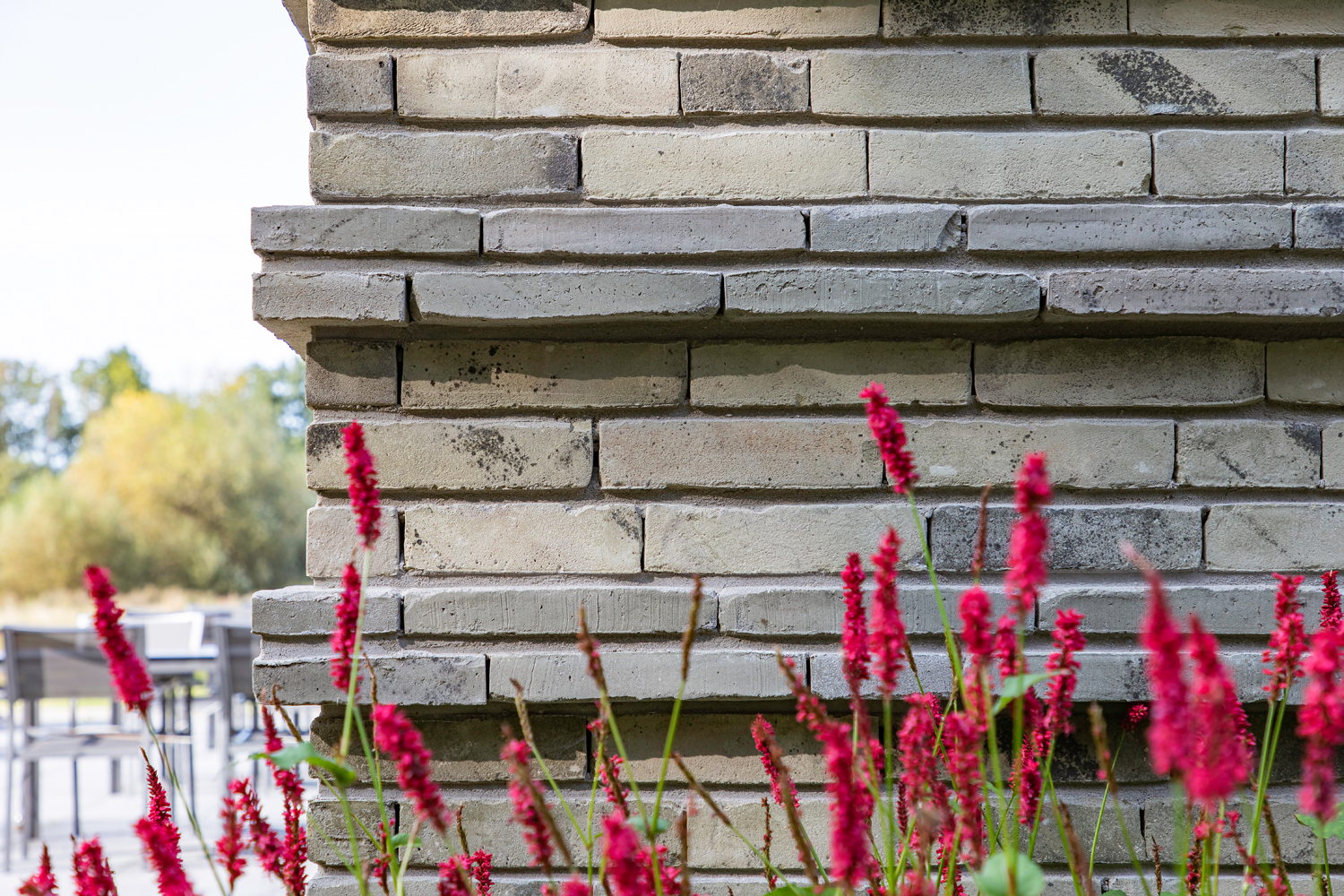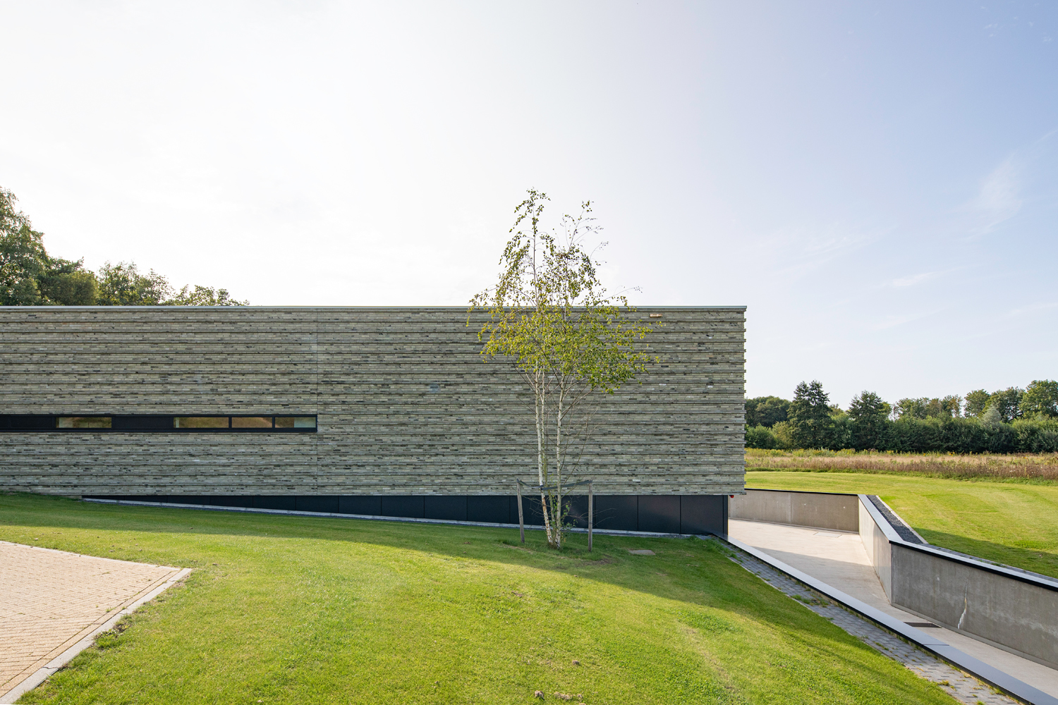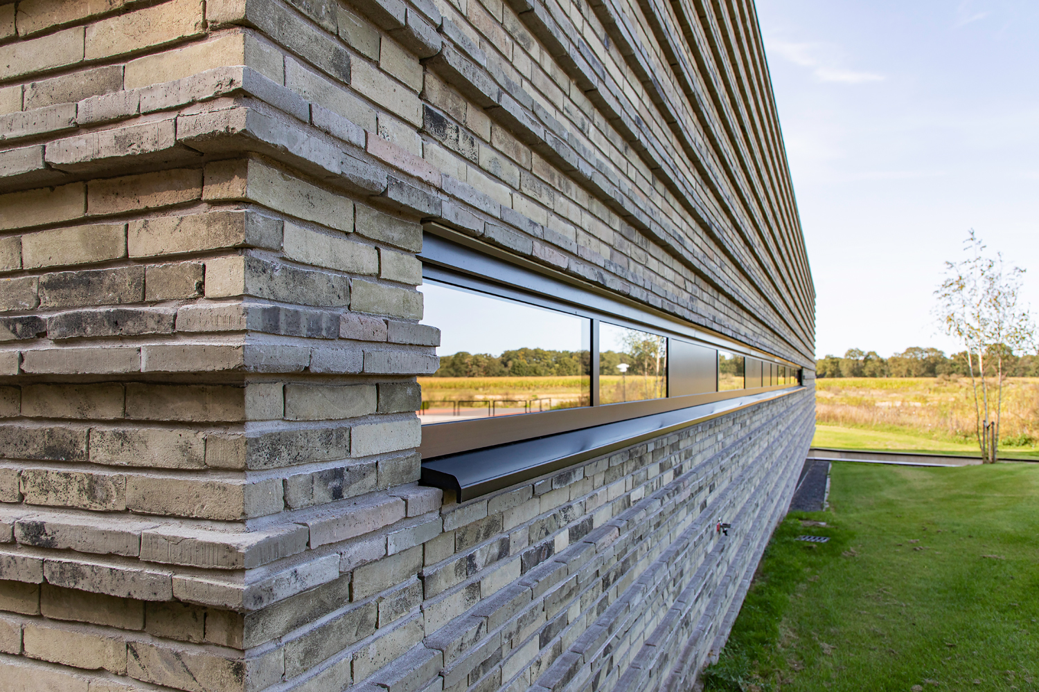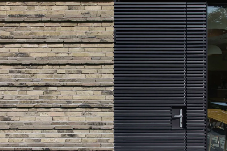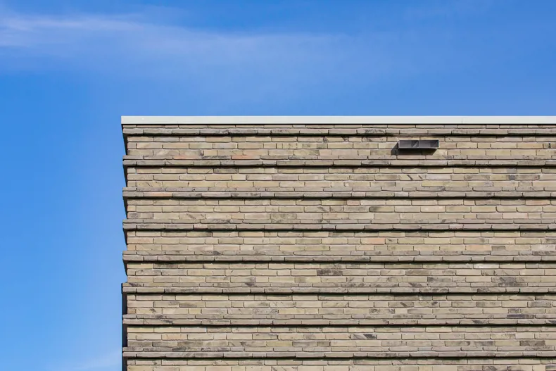 Het speciale metselverband is bedacht om een patroon te vormen van horizontale lijnen en de gevel te laten vibreren. De ecologische baksteen Nature7 Brick R en de dunne, lange linea 7036 bleken hiervoor de ideale combinatie te zijn. Hun groen-grijze kleur blend mooi samen en de twee verschillende formaten zijn allesbepalend voor het beoogde reliëfpatroon.