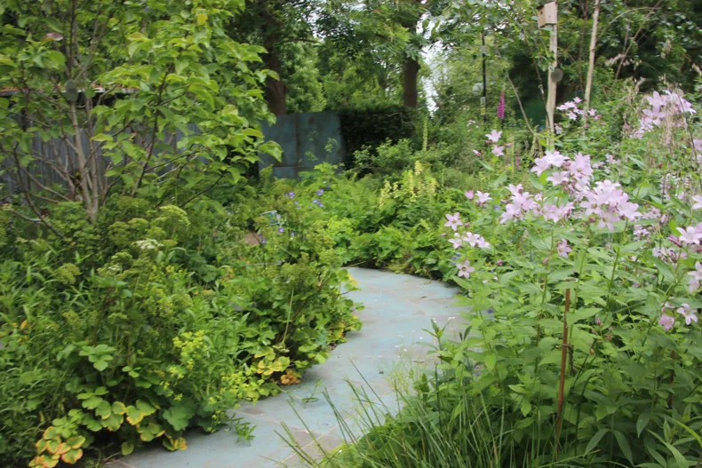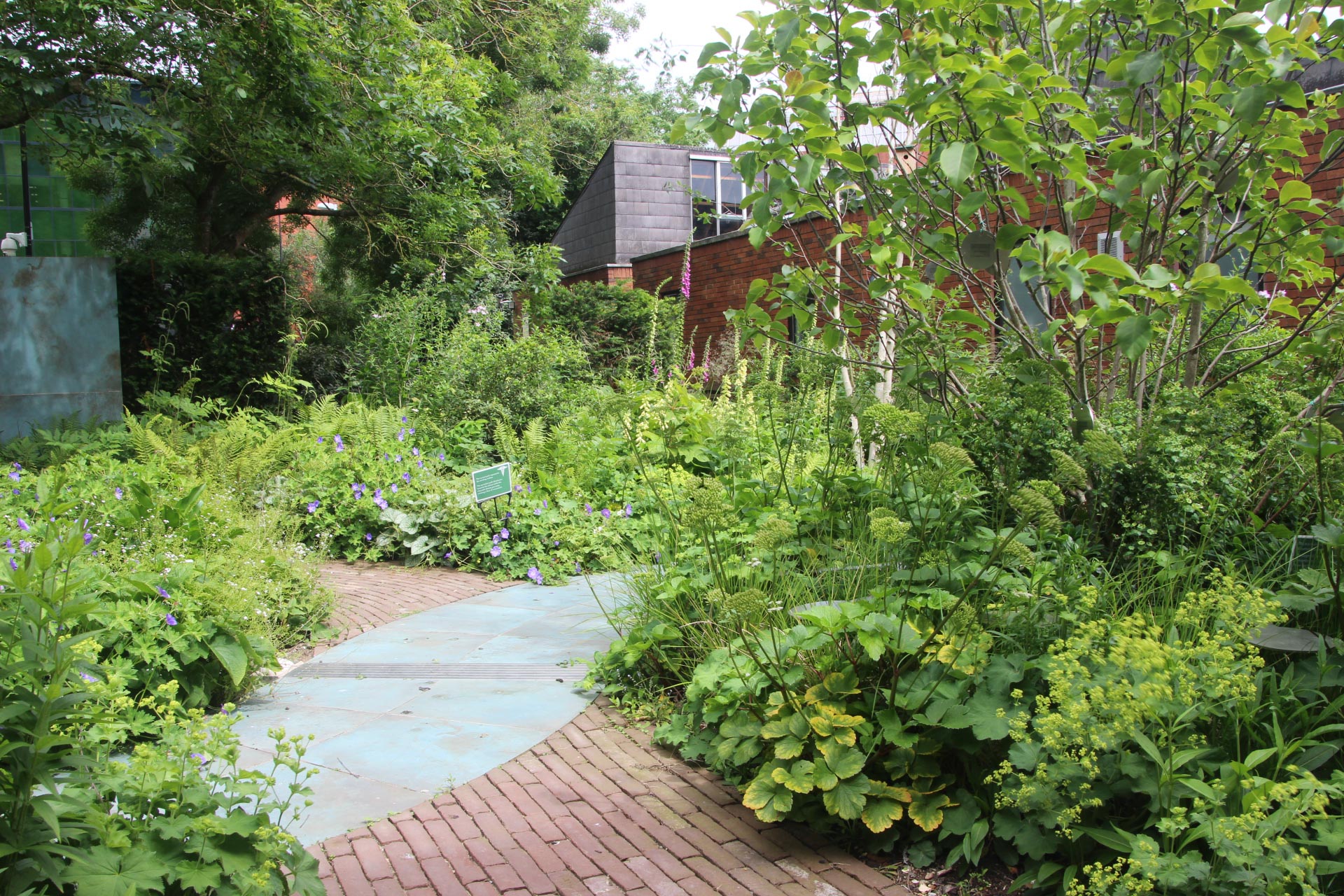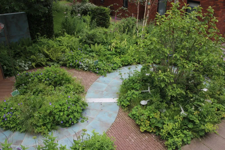 De tuin, die aanvankelijk te zien was in het RHS Tatton Park, werd gecreëerd om de genezing en veerkracht te vertegenwoordigen die nodig zijn tijdens de COVID-19-pandemie. Na de succesvolle presentatie van de tuin werd deze genereus gedoneerd aan Brookside Clinic, waar deze opnieuw werd samengesteld rond de hoofdingang van de kliniek om te dienen als een rustige, uitnodigende ruimte voor zowel patiënten als personeel. Het ontwerp is geïnspireerd op de Caduceus, het oude medische symbool dat twee slangen voorstelt die zich om een ??staf kronkelen. Hier biedt het centrale kenmerk - een transparante ronde prieel die de bovenkant van het personeel vertegenwoordigt - het hele jaar door een beschutte ruimte voor patiënten en personeel om te ontspannen en te socializen. De gebogen paden, afwisselend gelegd met de warm getinte SeptimA Auburn kleiklinkers en Verdigris-look porseleinen bestrating, bootsen de ineengestrengelde slangen na. Ze voegen visuele zachtheid en warmte toe aan de ruimte en leiden bezoekers door de herstellende gebieden van de tuin.