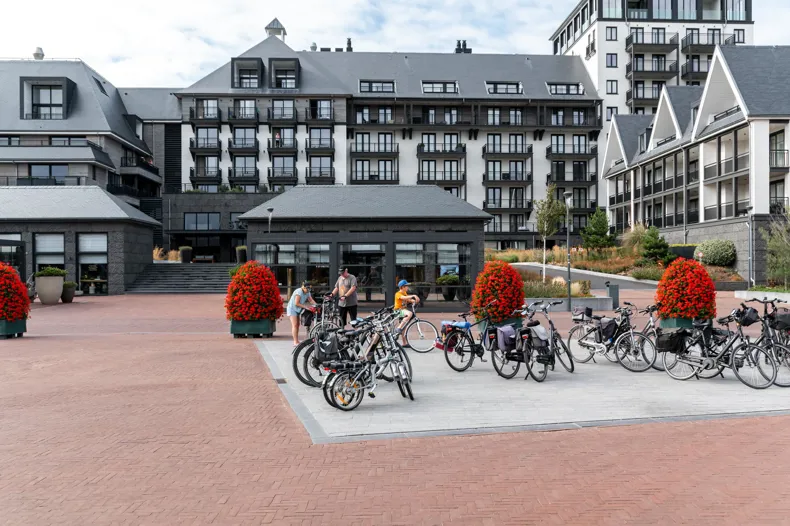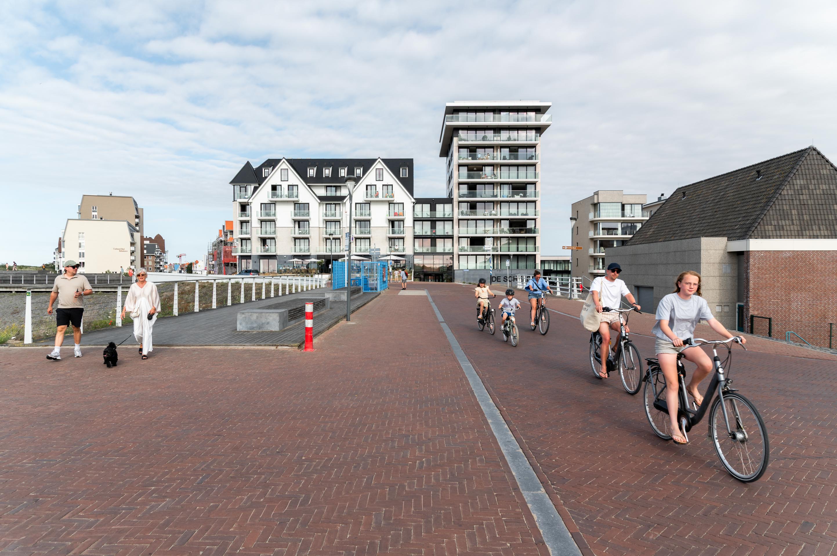 De ontwerpvisie van OKRA vertrekt vanuit een heldere structuur met drie ankerpunten: de jachthaven met het Maritiem Balkon, het Duinplein in het centrum en het Strandbalkon bij het Duinhof. Op deze plekken komt de badplaats samen en ontstaat een vanzelfsprekende overgang naar duinen en zee. De kleiklinker speelt hier een verbindende rol: pleinen, paden en overgangen geven structuur aan de omgeving en hangen logisch samen. Ook de verwerking van de straatbakstenen draagt bij aan de leesbaarheid van het landschap. Elleboog- en keperverbanden brengen ritme in het geheel en begeleiden beweging in de ruimte. Ze markeren subtiel overgangen tussen verblijfszones en circulatie. Zo is er op de overgang van de Boulevard de Wielingen naar de haven een nieuw, hellend plein aangelegd waaronder auto’s kunnen parkeren. Verrassende zit- en ligplekken geven het duingebied een ontspannen karakter. Betonnen randen structureren hier hoogteverschillen terwijl houten elementen tactiliteit en comfort toevoegen. Rond de jachthaven geven natuursteen en roestvrij staal de omgeving dan weer een verfijnde, maritieme uitstraling.