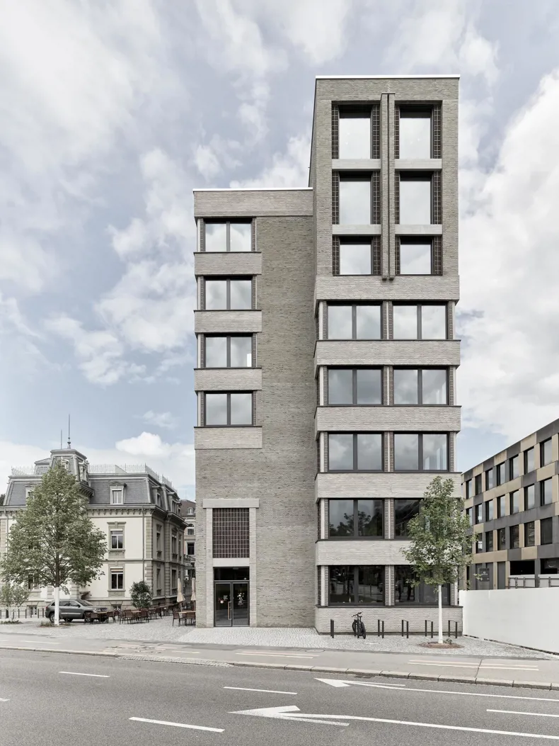 Het ontwerp van het nieuwe gebouw is gebaseerd op respect voor de historische en stedelijke context van de locatie. Het project, gelegen aan de Rosenbergstrasse, moest een evenwicht vinden tussen zijn aanwezigheid te midden van een villawijk, toegang tot de snelweg en de nabijheid van een bruisend treinstation. De architecten hadden een structuur voor ogen die zou fungeren als een oriëntatiepunt aan de rand van het stadscentrum en tegelijkertijd het primaat van de villa zou behouden.