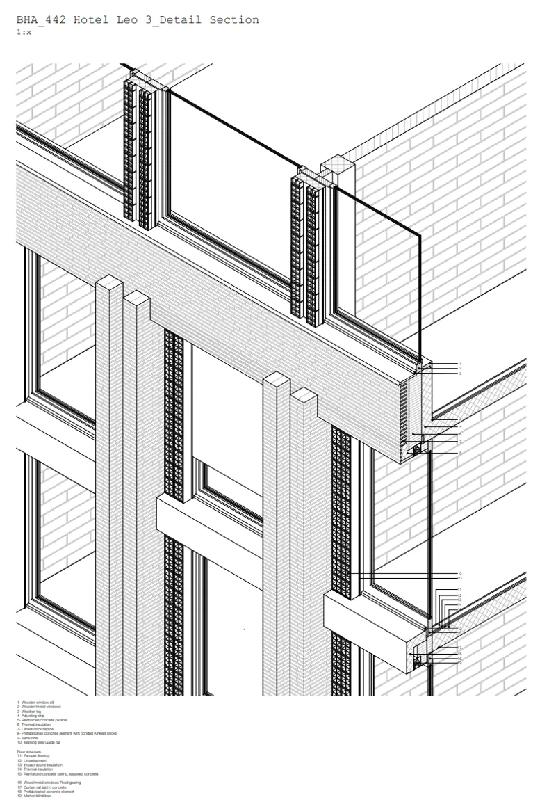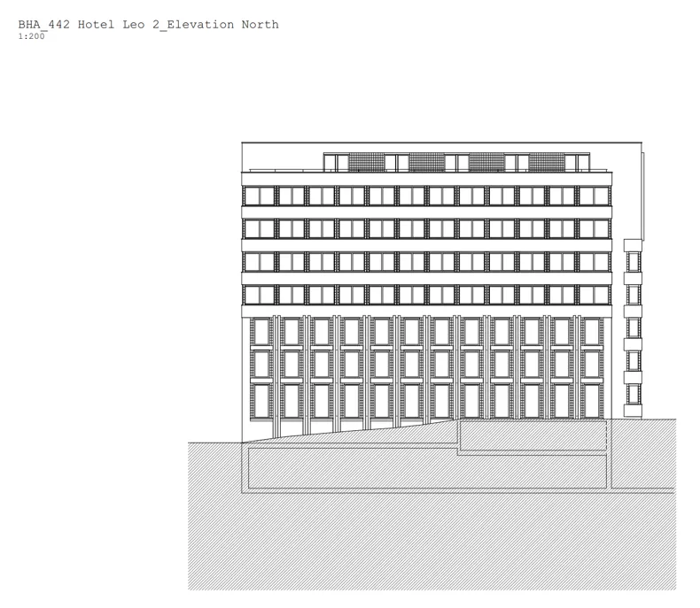 Om dit te bereiken werd het nieuwe gebouw naar achteren geplaatst om een semi-openbare buitenruimte te creëren die de villa omringt. Het smalle profiel en de verticale gevelindelingen werden zorgvuldig ontworpen om de proporties van nabijgelegen historische gebouwen te weerspiegelen, waardoor een dialoog tussen oud en nieuw ontstaat. De levendige bar en het restaurant op de begane grond en de 102 hotelkamers op de bovenste verdiepingen maken het gebouw tot een dynamische, functionele toevoeging aan het gebied.