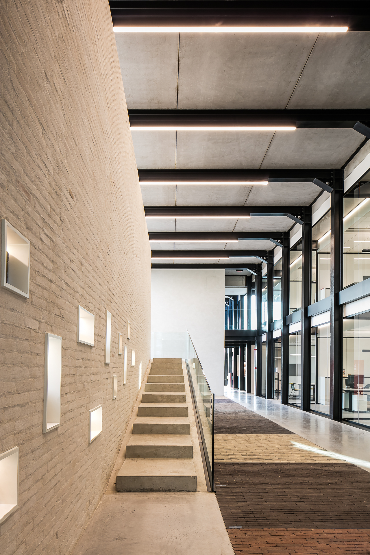 Aangezien het volledige, uitgebreide gamma aan de binnen- en buitenkant in het bouwvolume zit ingebakken, was de grote uitdaging voor de architecten om deze integratie op een overzichtelijke en rustige manier uit te voeren.
