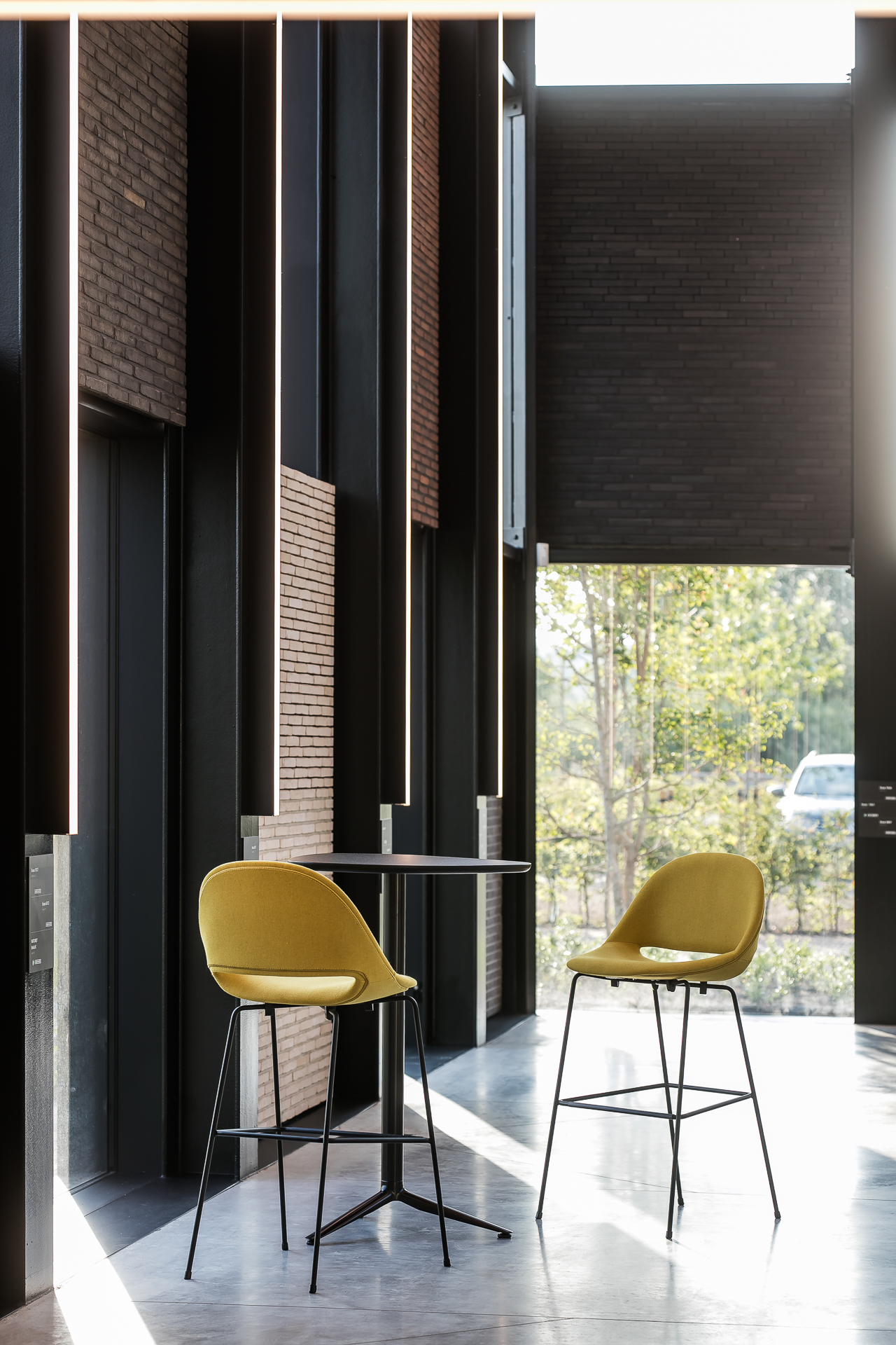 De uitgebalanceerde, ritmische architectuur in combinatie met het samenspel van kleuren blijft op het netvlies gebrand van elke bezoeker of passant. Zowel het gebouw als de functionele ruimte errond zijn ontworpen met maximaal respect voor de Scheldevallei.
