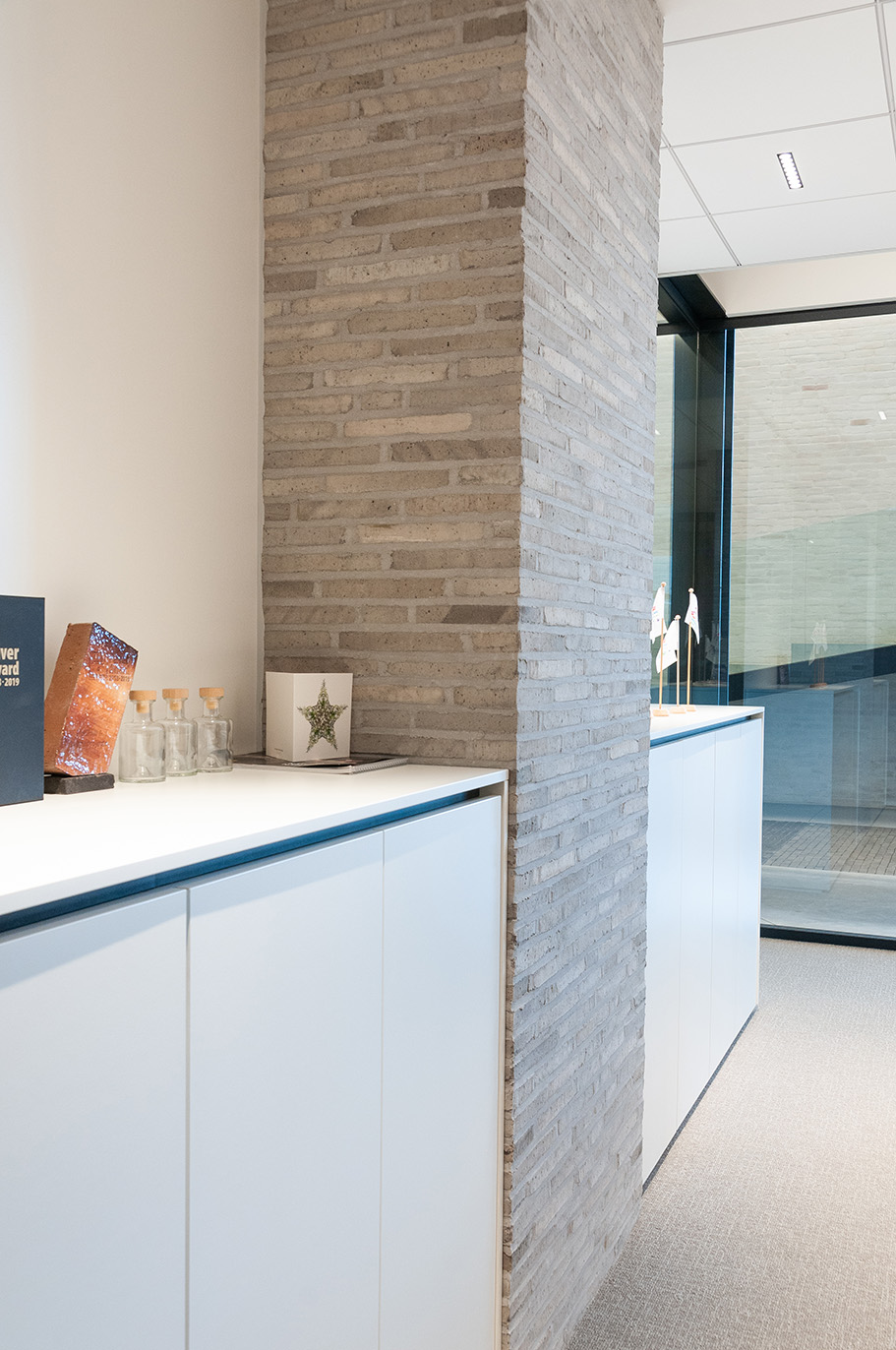Het gebouw laat niet alleen een volledig gamma zien, het toont eveneens de veelzijdigheid in het gebruik van keramische gevelstenen en klinkers. Beide doen de laatste jaren terug meer en meer hun intrede in interieurs en worden verwerkt met een veelheid aan technieken.