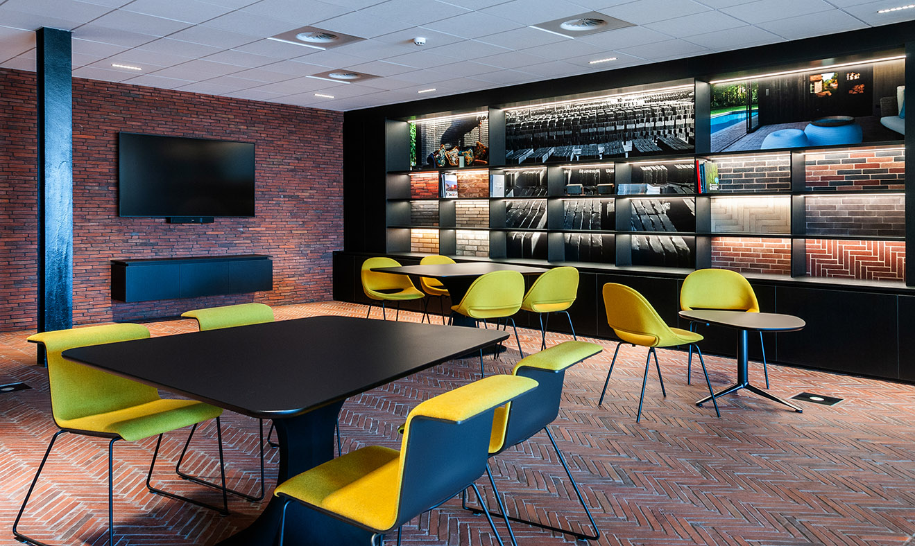 Als resultaat van deze oefening werd het volledige gamma gevelstenen en kleiklinkers ingewerkt in het design, zowel binnen als buiten, zodat alle producten te bezichtigen zijn onder natuurlijk licht. Bijkomend pluspunt is dat de showroom hierdoor niet meer gebonden is aan kantooruren en personeelsbezetting.