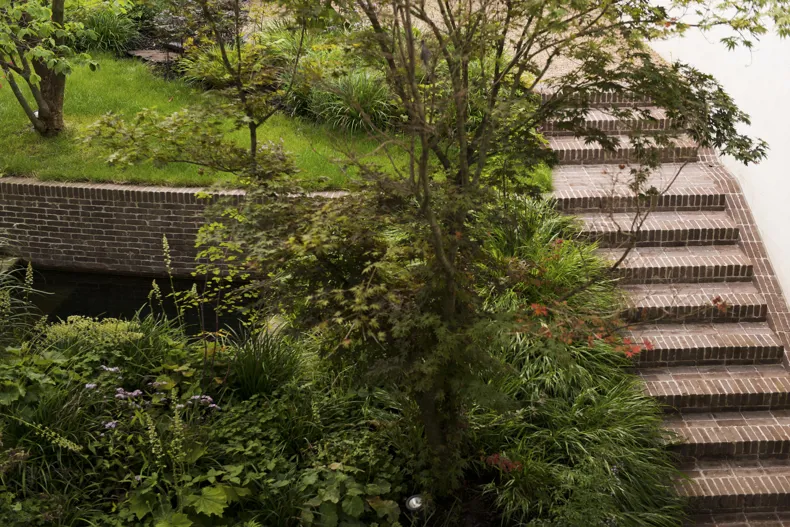 ‘Camel’ kleiklinkers ademen gewenste authenticiteit uit en verbinden het niveauverschil in de tuin op sublieme wijze