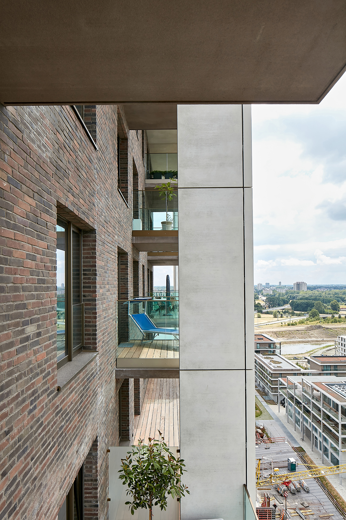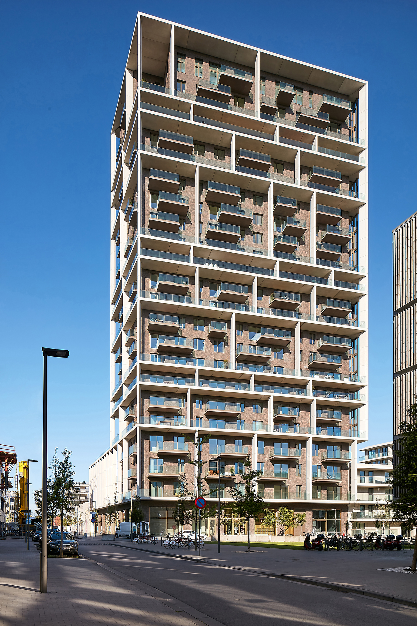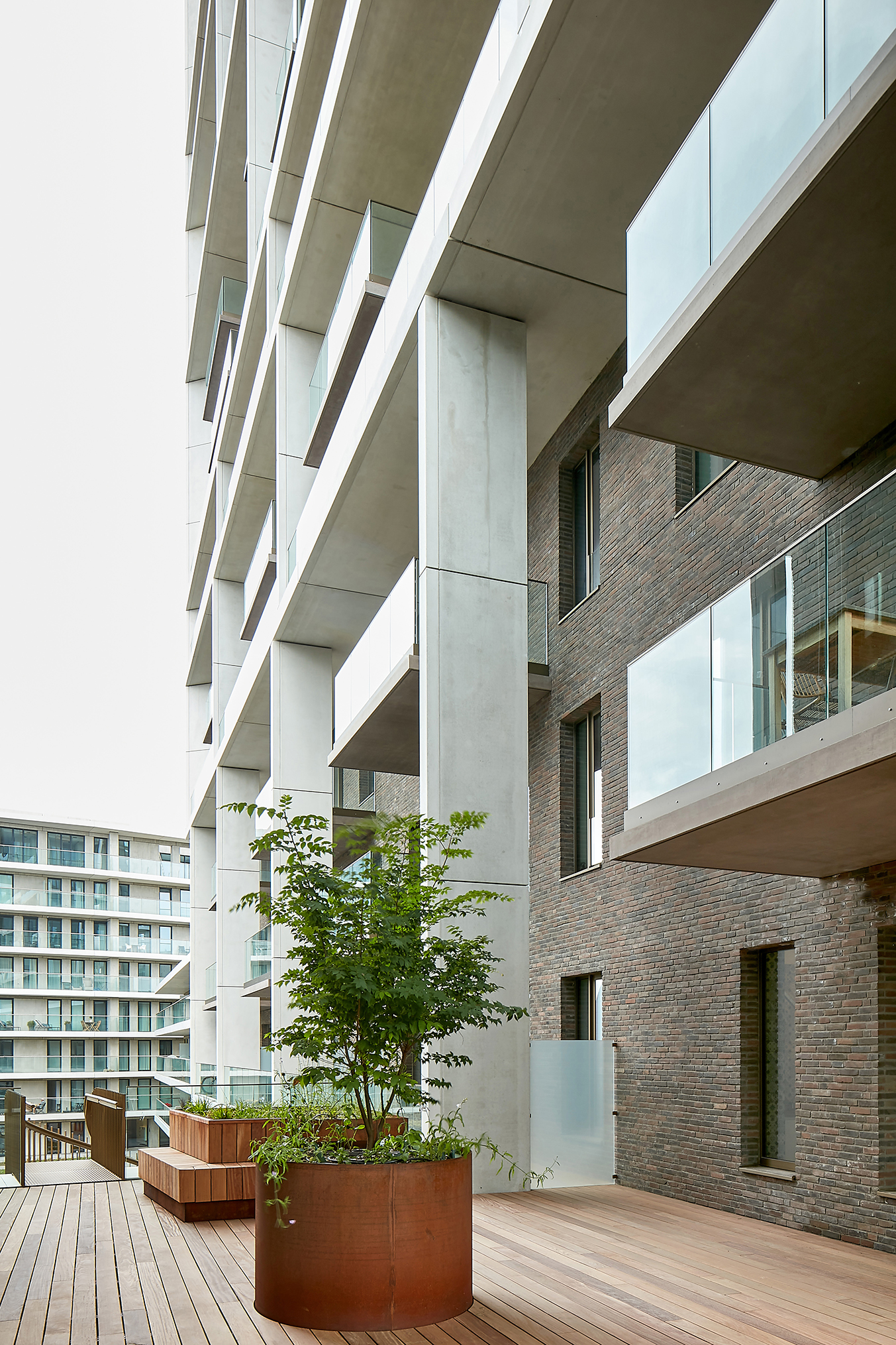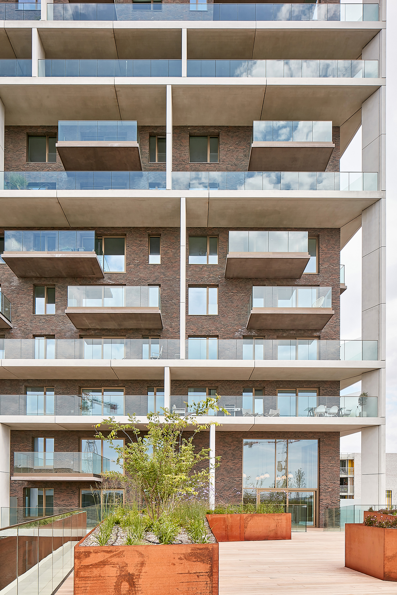 Het 24 verdiepingen tellende gebouw van 15.000 m² met 116 woningen en kantoren, commerciële ruimtes en collectieve ruimtes werd aangevuld met nog eens zo’n 5.000 m² aan balkons, wintertuinen en dakterrassen. Die kwalitatieve buitenruimte verhoogt de levenskwaliteit en voegt een menselijke schaal toe aan dit hoogbouwproject, op maat van de voorbijgangers, bezoekers en bewoners van het gebouw.