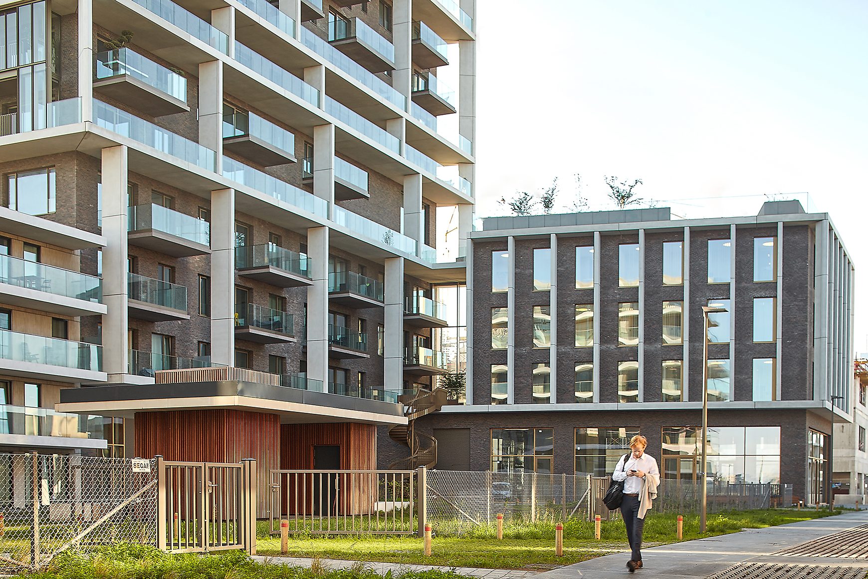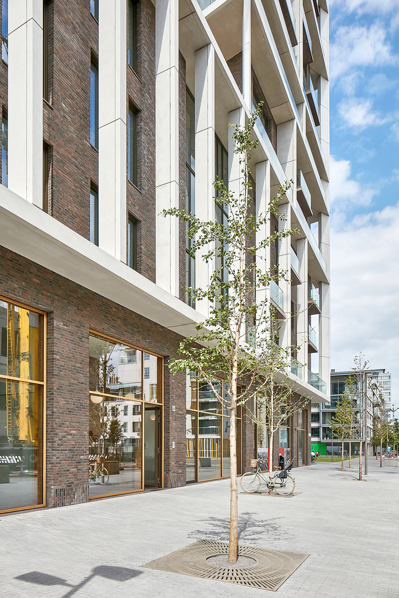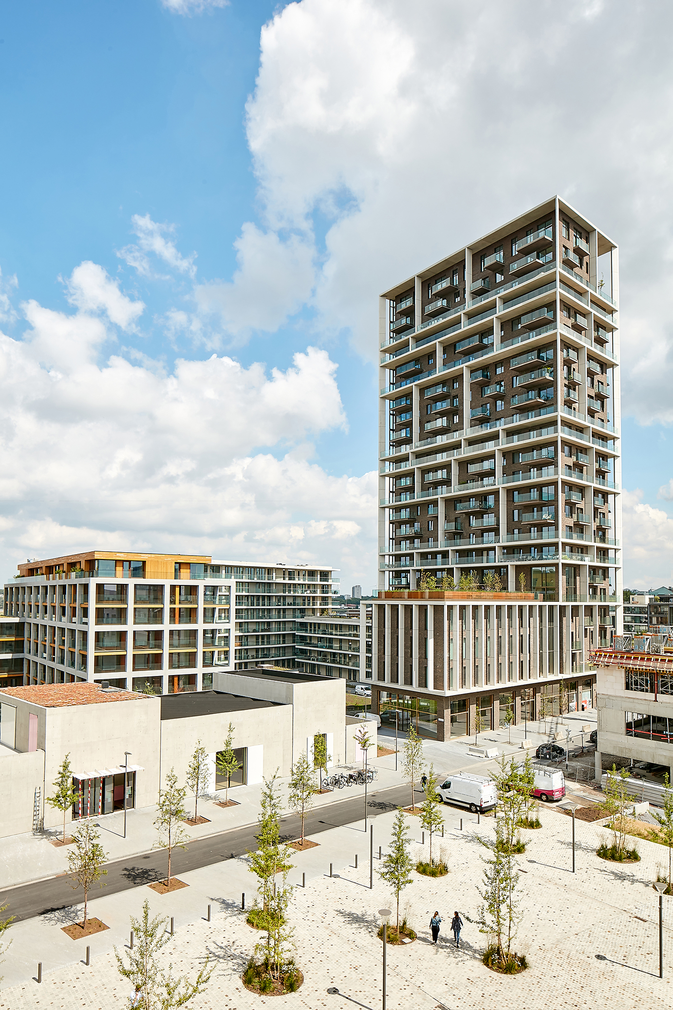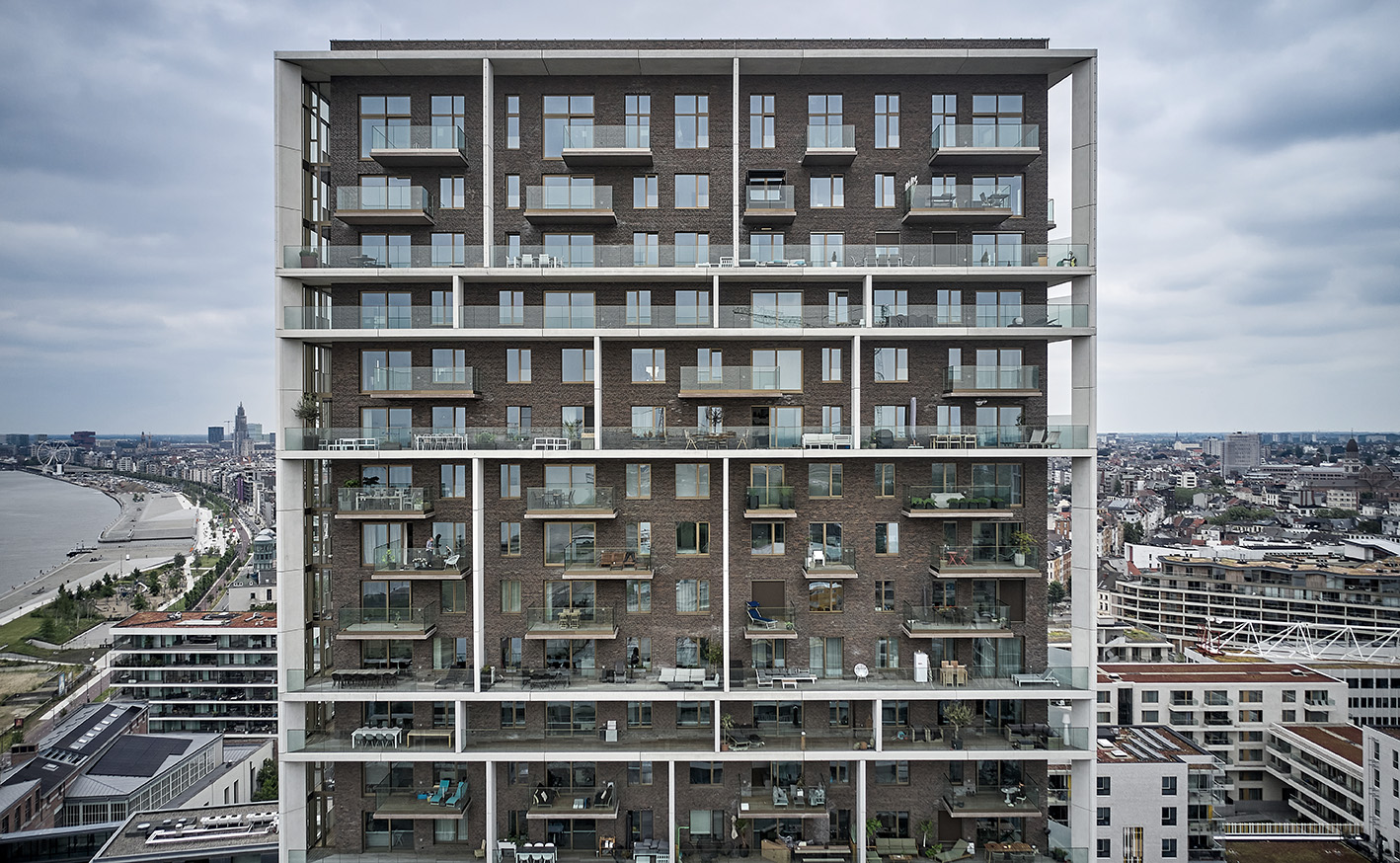 Het 24 verdiepingen tellende gebouw van 15.000 m² met 116 woningen en kantoren, commerciële ruimtes en collectieve ruimtes werd aangevuld met nog eens zo’n 5.000 m² aan balkons, wintertuinen en dakterrassen. Die kwalitatieve buitenruimte verhoogt de levenskwaliteit en voegt een menselijke schaal toe aan dit hoogbouwproject, op maat van de voorbijgangers, bezoekers en bewoners van het gebouw.