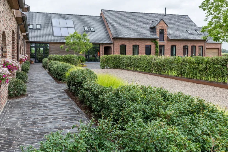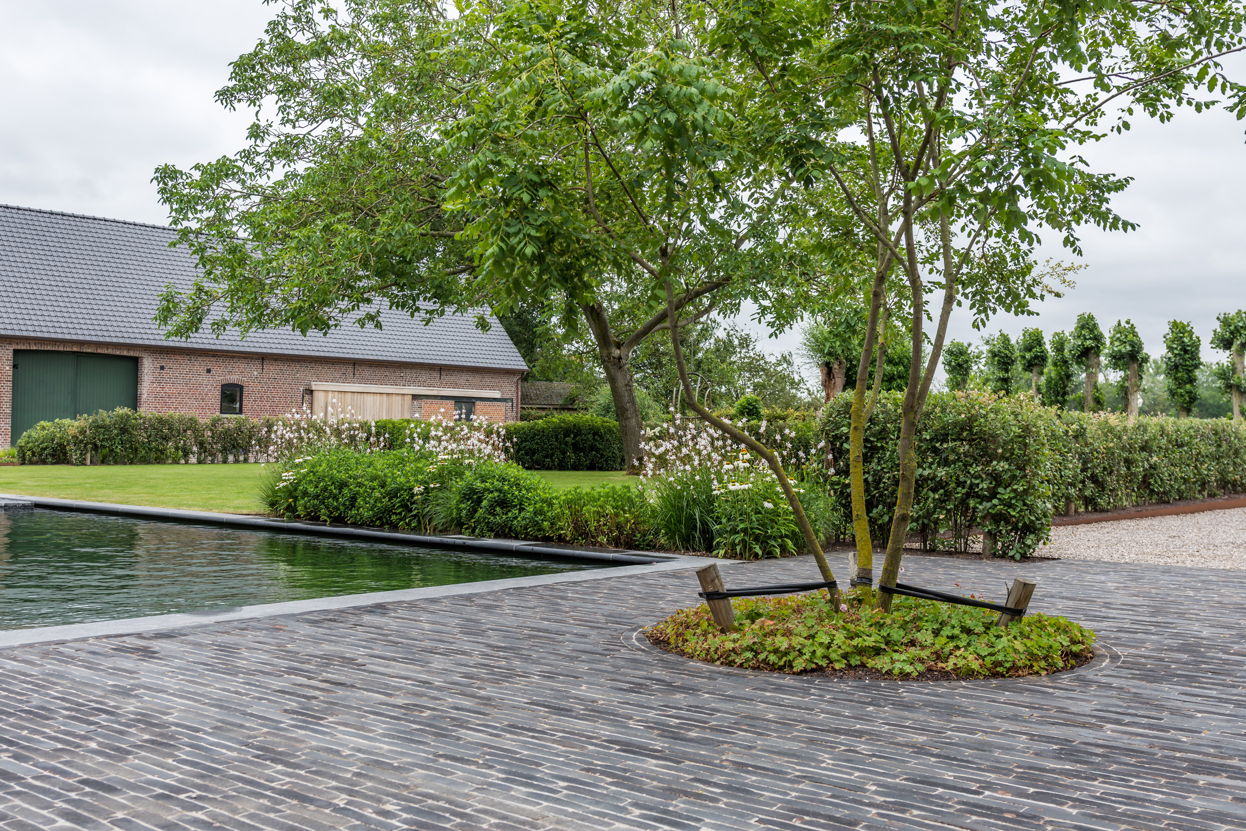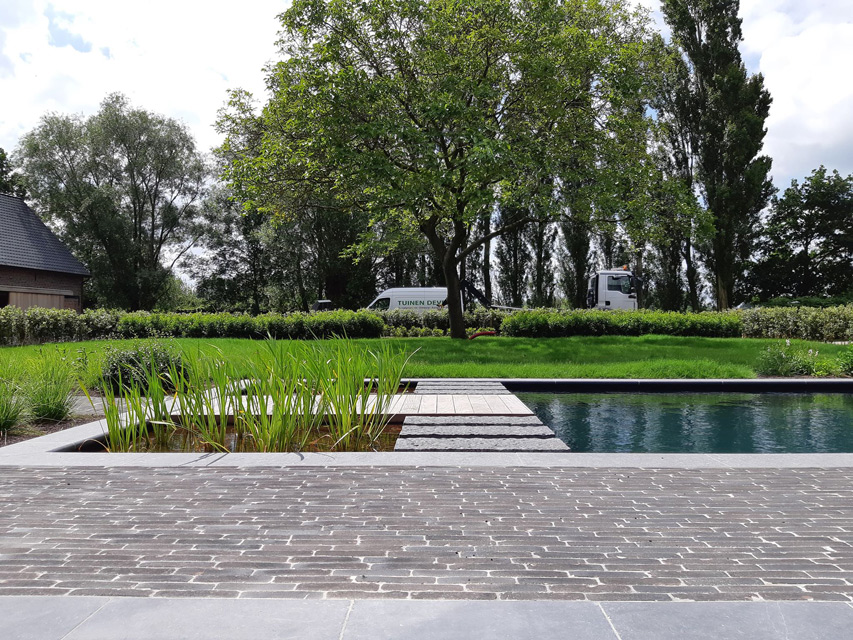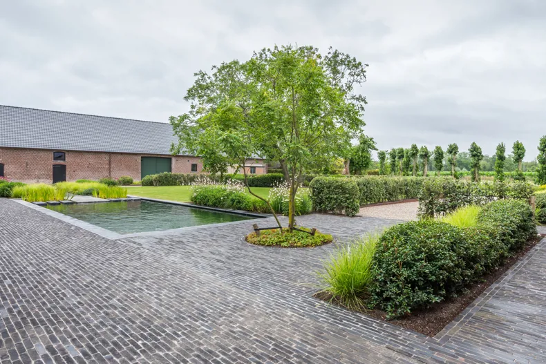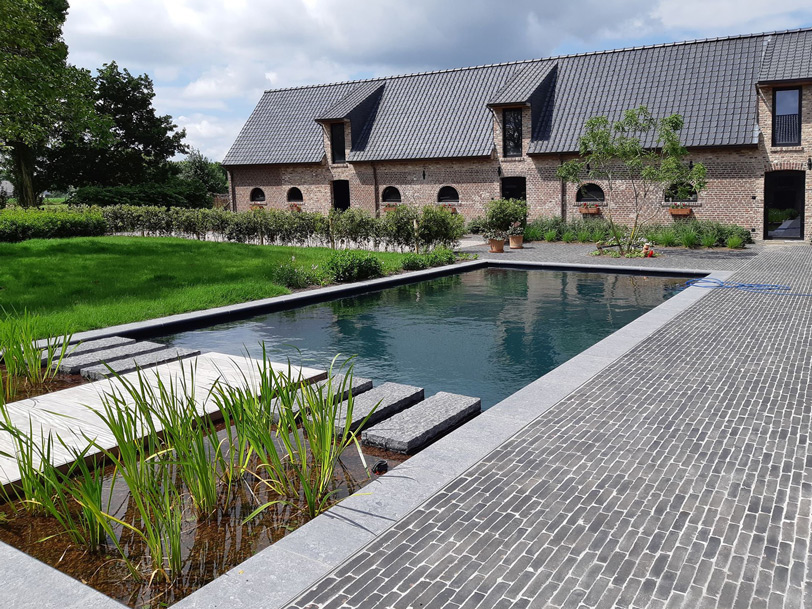 Deze oude hoeve, gelegen in het West-Vlaamse Moorslede, onderging reeds een grondige renovatie. Naast de gezinswoning is er tevens een accommodatie voorzien die als bed and breakfast zal fungeren. Voor de aankleding van de tuin kreeg tuinaannemer Laurens Devroe de opdracht om een natuurlijke zwemvijver aan te leggen die zou aansluiten bij het landelijke en tijdloze karakter van de hoeve. In een latere fase is het ook de bedoeling dat de eigenaars de zwemvijver delen met de bezoekers van hun toekomstige bed and breakfast.