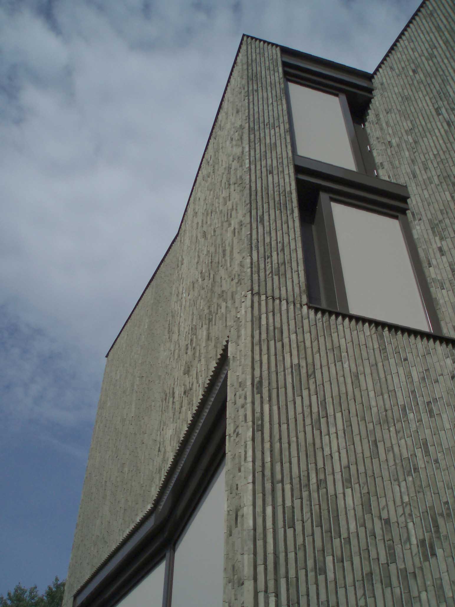 Technisch gezien zijn de gevels opgetrokken uit grote betonelementen. De Nature7 Brick R werd om esthetische redenen toegevoegd aan deze elementen. Ze werden gemaakt door de gevelstenen eerst in een houten mal te plaatsen en vervolgens de mal vol te storten met beton.