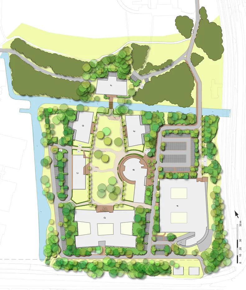 Een volledige integratie van het terrein in zijn landelijke en stedelijke omgeving is het uitgangpunt van de visie, echter met behoud van het bijzondere karakter en de specifieke kwaliteiten. Het vele groen dat het gebied rijk is, is ingezet als drager van de nieuwe ontwikkelingen.