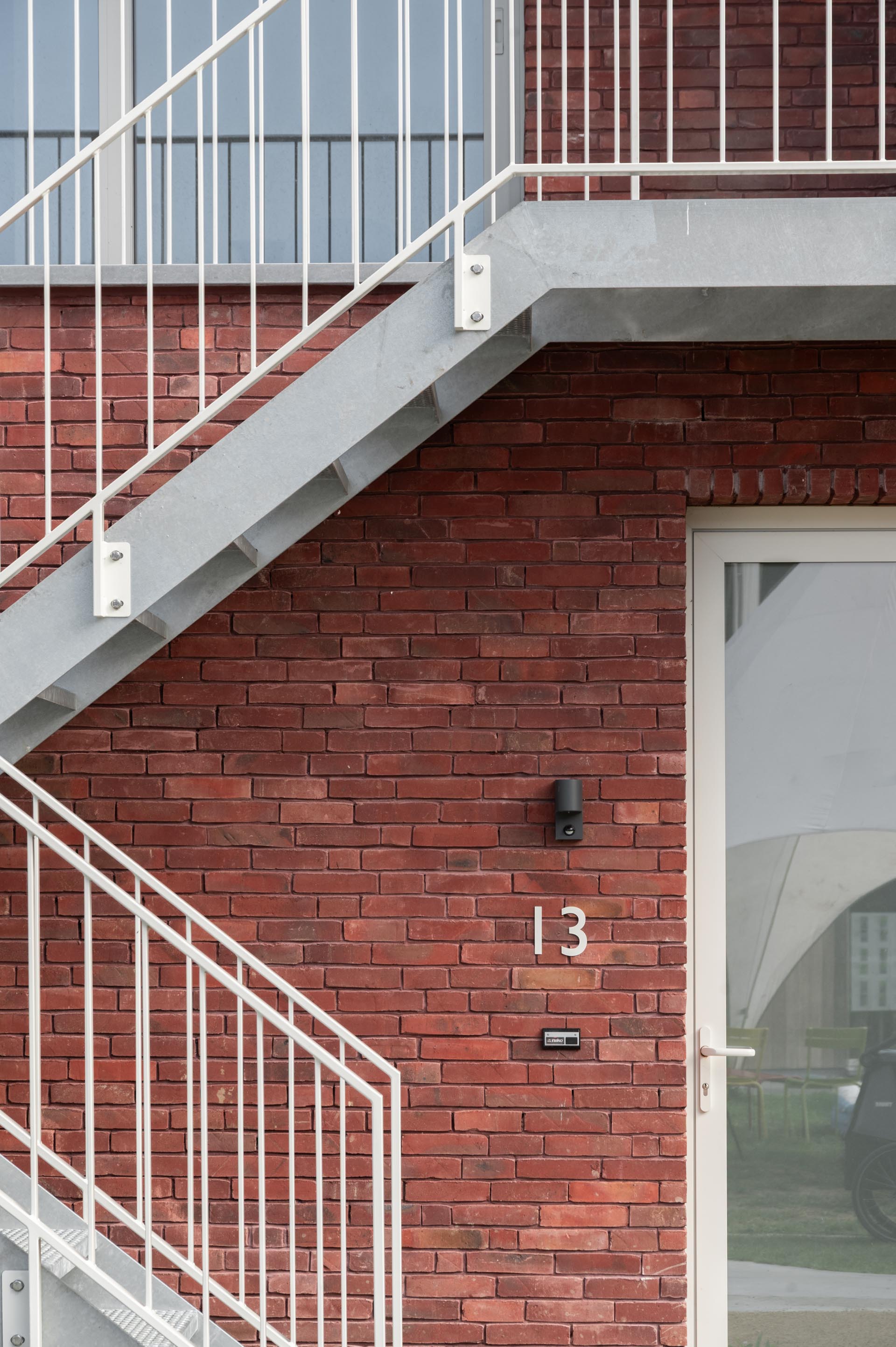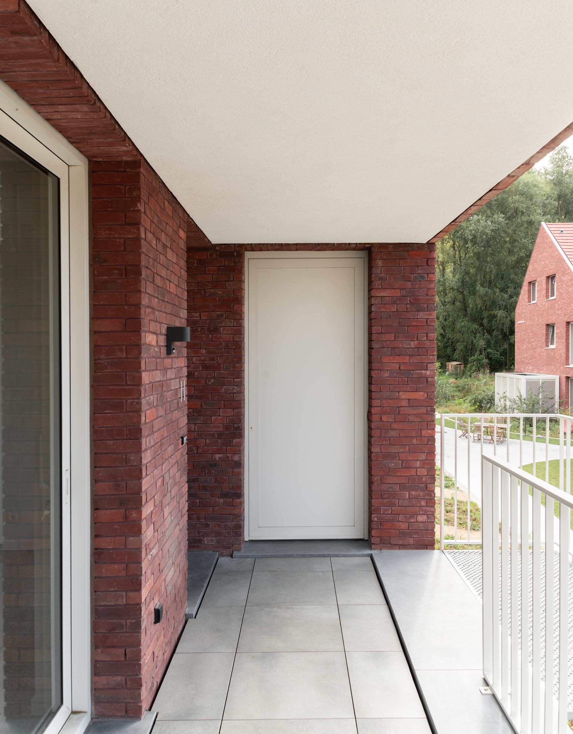 De architecten benadrukken dat de roestige, minder verzadigde rode kleur van de Brick E de perfecte match vormde met het concept van een vertrouwde, huiselijke buurt in contrast met de kenmerkende groene omgeving. De onbezande afwerking zorgt voor een zacht en levendig oppervlak dat het natuurlijke licht mooi vangt. Deze warme tint van de NATURE7 Brick E wordt verfijnd gecombineerd met witgrijs schrijnwerk, natuurlijke zinkdetails en lichtgrijze arduinen accenten. Deze ingetogen combinatie versterkt het rustgevende karakter van de woonblokken en benadrukt de natuurlijke schakering van de handgemaakte steen.