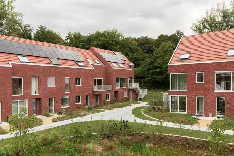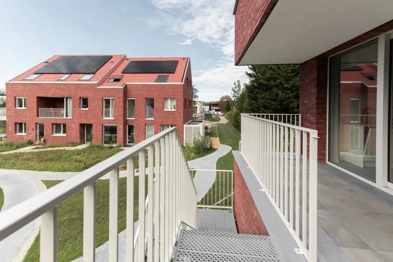 Roodbruine gevelsteen verenigt duurzaamheid, collectiviteit en huiselijke architectuur in cohousingproject BloM te Merelbeke